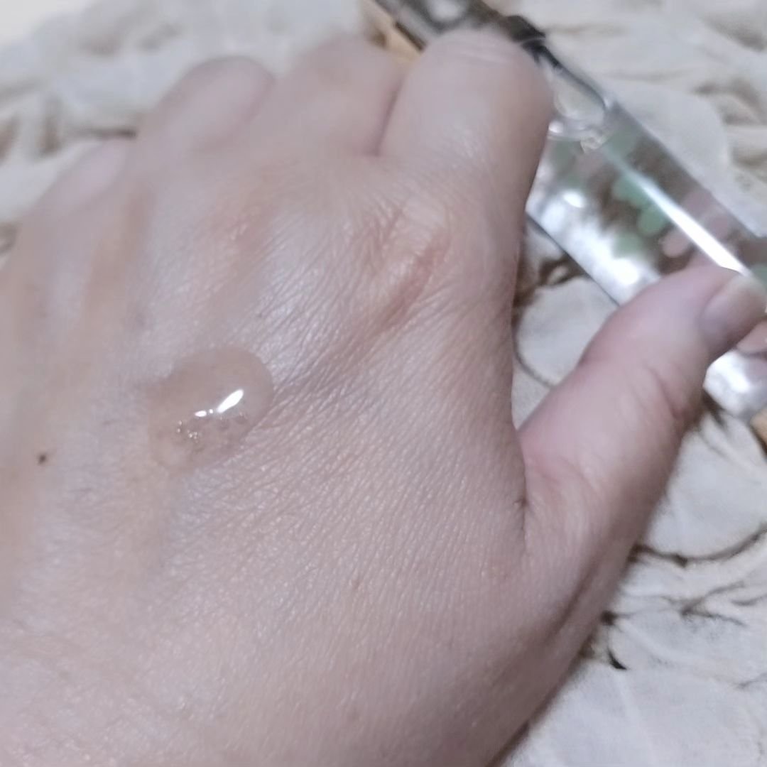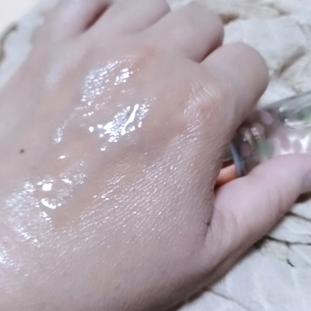 うわぁ!なんてきれいなの!かわいいの♪ 見た目の粒のぷかぷかしてる姿にときめきました🩷 プッシュタイプで、1プッシュで写真のような量が出ます。 2プッシュすれば顔や首デコルテにも足りるくらいに、よくのびますよ。 テクスチャはしっとり。 べとつくオイリーさはないけどややこっくりした感触。