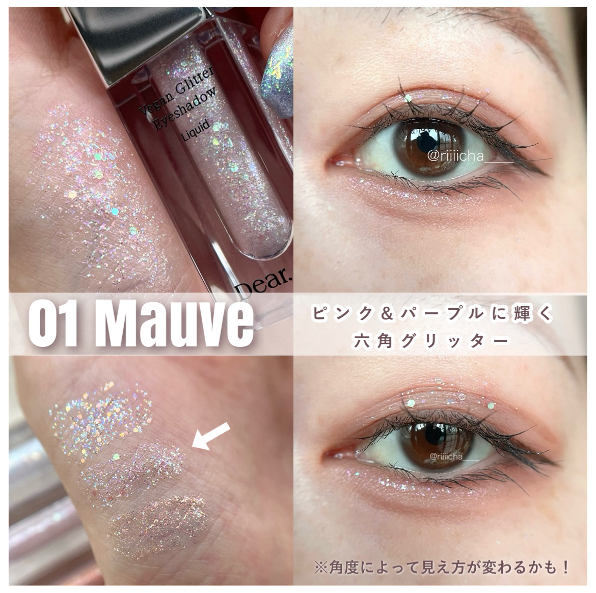 Dear.A様からいただきましたDear.Aグリッターアイシャドウ00 HEAVEN01 MAUVE02 SUNBEAM00heaven偏光の丸型スパンコール、大きめ六角形のグリッタークリアホワイトベースなので、どんなメイクにも合わせられる!...