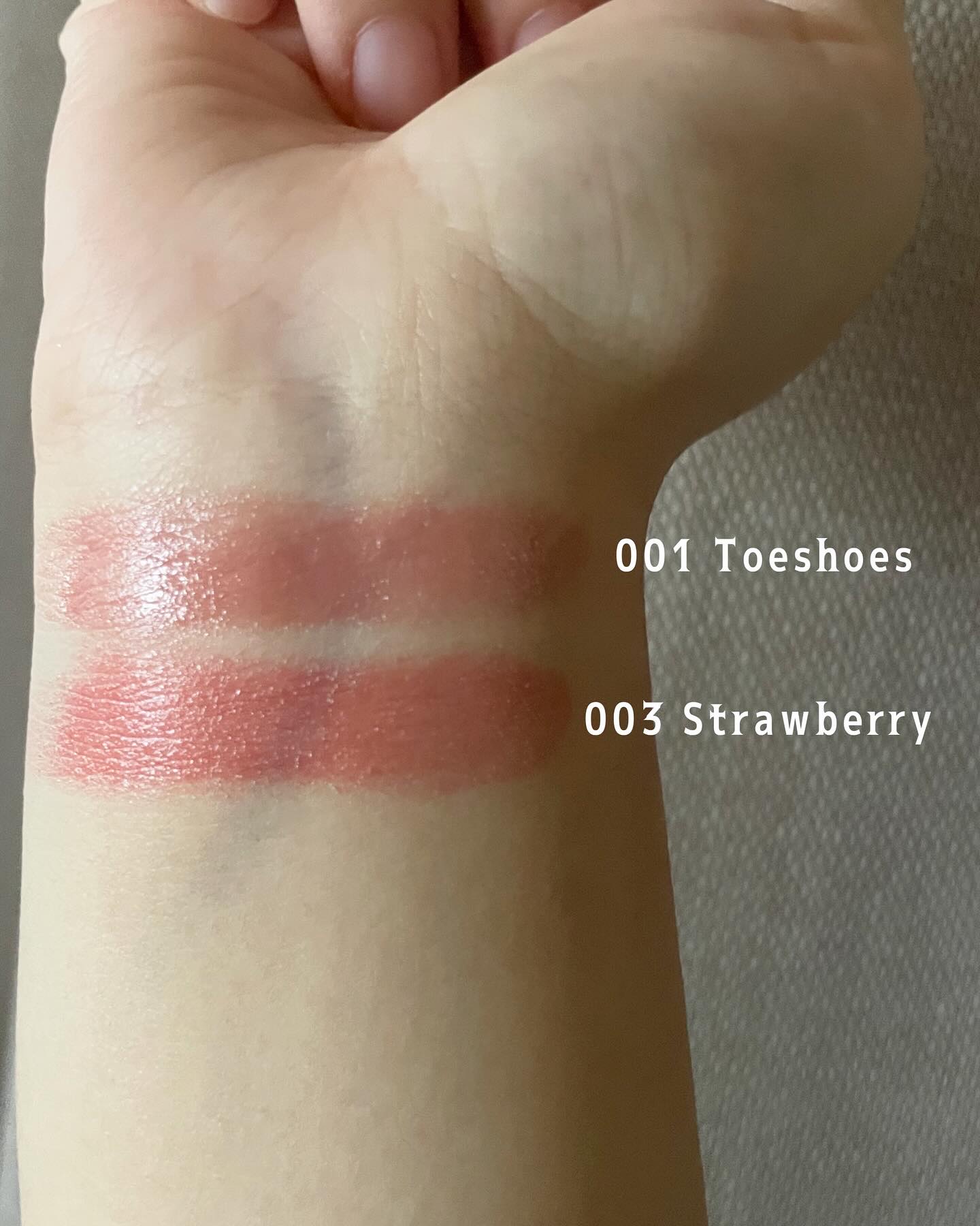 - <001 トゥシューズ> ビス-ベヘニル/アイソステアリル/フィトステリルダイマーダイリノレイルダイマーダイリノレエイト、ポリアイソブテン、ダイアイソステアリルマレート、ホホバ種子油、合成ワックス、¥ダイフェニルジメチコン、ポリグリセリル-2トライアイソステアレート、トライデシルトライメリテート、ダイペンタエリスリチルヘキサヒドロキシステアレート/ヘクサステアレート/ヘクサロジネート、水添ポリアイソブテン、トコフェリルアセテート、二酸化チタン、カプリリック/カプリックトリグリセリド、カンデリラワックス、ソルビタンセスキオレイエート、ヒマワリ種子ワックス、地母根エキス、マイクロクリスタリンワックス、ステアラルコニウムヘクトライト、ポリヒドロキシステアリン酸、レシチン、アイソステアリン酸、アイソプロピルミリステート エチルヘキシルパルミテート、二酸化チタン/二酸化チタン、エチレン/プロピレンコポリマー プロピレンカーボネート、ポリグリセリル-3ポリリシノレエート、ダイメチコン、トコフェロール、精製水、ブチレングリコール、グリセリン、1,2-ヘキサンジオール、カプリリルグリコール ノナペプチド-1、アセチルヘキサペプチド-8、カッパトライペプチド-1、トライペプチド-1、パルミトイルテトラペプチド-7、パルミトイルトライペプチド-1、パルミトイルペンタペプチド-4、ヘクサペプチド-9、デヒドロ酢酸、黄色4号、赤色201号、赤色酸化鉄、赤色202号、赤色218号 <002 モラン(牡丹)> ビス-ベヘニル/アイソステアリル/フィトステリルダイマーダイリノレイルダイマーダイリノレエイト、ポリアイソブテン、ダイアイソステアリルマレート、ホホバ種子油、合成ワックス、ダイフェニルジメチコン、ポリグリセリル-2トライアイソステアレート、トライデシルトライメリテート、ダイペンタエリスリチルヘキサヒドロキシステアレート/ヘクサステアレート/ヘクサロジネート、水添ポリアイソブテン、トコフェリルアセテート、カプリリック/カプリックトリグリセリド、カンデリラワックス、二酸化チタン、ソルビタンセスキオレイエート、ヒマワリ種子ワックス、ウコン根エキス、地母根エキス、マイクロクリスタリンワックス、ステアラルコニウムヘクトライト、ポリヒドロキシステアリン酸、レシチン、アイソステアリン酸、アイソプロピルミリステート、エチルヘキシルパルミテート、エチレン/プロピレンコポリマー、プロピレンカーボネート、二酸化チタン/二酸化チタン、ポリグリセリル-3ポリリシノレエート、ダイメチコン、アラビアゴム、マルトデキストリン、トコフェロール、精製水、ブチレングリコール、グリセリン、1,2-ヘキサンジオール、カプリリルグリコール、ノナペプチド-1、アセチルヘキサペプチド-8、カッパトライペプチド-1、トライペプチド-1、パルミトイルテトラペプチド-7、パルミトイルトライペプチド-1、パルミトイルペンタペプチド-4、ヘクサペプチド-9、デヒドロ酢酸、赤色酸化鉄、黄色4号、赤色202号、等色201号 <003 ストロベリー> ビス-ベヘニル/アイソステアリル/フィトステリルダイマーダイリノレイルダイマーダイリノレエイト、ポリアイソブテン、ダイアイソステアリルマレート、ホホバ種子油、ポリグリセリル-2トライアイソステアレート、合成ワックス、ダイフェニルジメチコン、トライデシルトライメリテート、ダイペンタエリスリチルヘキサヒドロキシステアレート/ヘクサステアレート/ヘクサロジネート、水添ポリアイソブテン、トコフェリルアセテート、カプリリック/カプリックトリグリセリド、カンデリラワックス、黄色4号、ソルビタンセスキオレイエート、ヒマワリ種子ワックス、ウコン根エキス、地母根エキス、マイクロクリスタリンワックス、ステアラルコニウムヘクトライト、ポリヒドロキシステアリン酸、レシチン、アイソステアリン酸、アイソプロピルミリステート、エチルヘキシルパルミテート、エチレン/プロピレンコポリマー、プロピレンカーボネート、ポリグリセリル-3ポリリシノレエート、ダイメチコン、アラビアゴム、マルトデキストリン、トコフェロール、精製水、ブチレングリコール、グリセリン、1,2-ヘキサンジオール、カプリリルグリコール、ノナペプチド-1、アセチルヘキサペプチド-8、カッパトライペプチド-1、トライペプチド-1、パルミトイルテトラペプチド-7、パルミトイルトライペプチド-1、パルミトイルペンタペプチド-4、ヘクサペプチド-9、デヒドロ酢酸、赤色104号、赤色202号、等色201号 <004 プラムシロップ> ビス-ベヘニル/アイソステアリル/フィトステリルダイマーダイリノレイルダイマーダイリノレエイト、ポリアイソブテン、ダイアイソステアリルマレート、ホホバ種子油、合成ワックス、ダイフェニルジメチコン、ポリグリセリル-2トライアイソステアレート、トライデシルトライメリテート、ダイペンタエリスリチルヘキサヒドロキシステアレート/ヘクサステ
