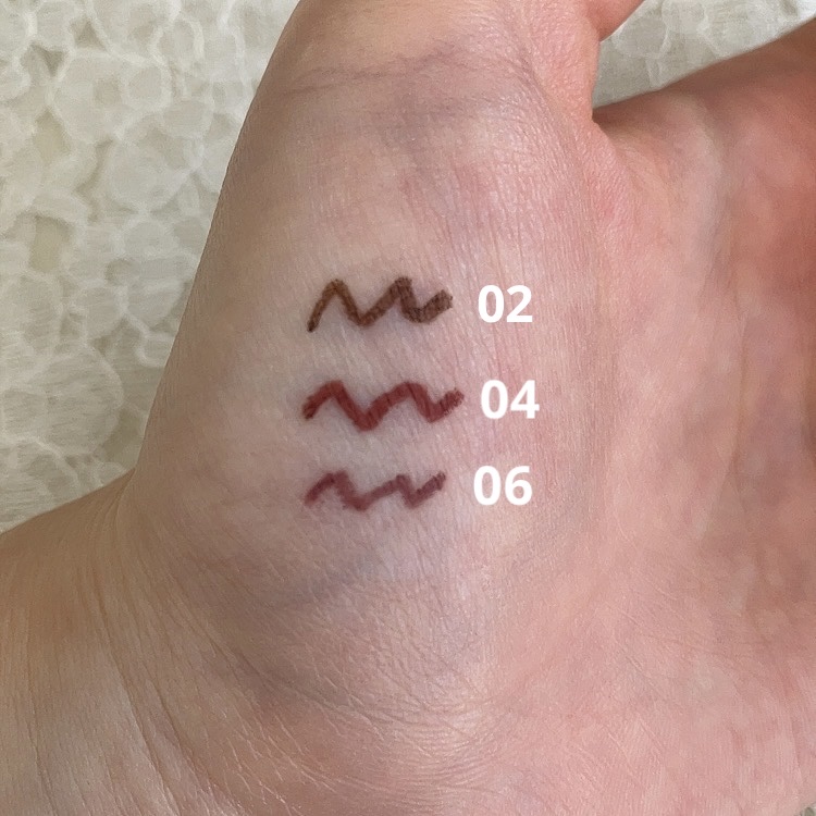 - <01 ディープブラック> メチルトリメチコン、トリメチルシロキシケイ酸、(アクリレーツ/アクリル酸ステアリル/メタクリル酸ジメチコン)コポリマー、ポリエチレン、カルナウバロウ、キャンデリラロウ、ジメチコン、水添レシチン、シリカ、メタクリル酸メチルクロスポリマー、トコフェロール、スクワラン、ホホバ種子油、マカデミア種子油、ヒアルロン酸Na、メチコン、(+/-)水酸化Al、酸化鉄、マイカ、酸化チタン <02 ミディアムブラウン> メチルトリメチコン、トリメチルシロキシケイ酸、(アクリレーツ/アクリル酸ステアリル/メタクリル酸ジメチコン)コポリマー、ポリエチレン、カルナウバロウ、キャンデリラロウ、ジメチコン、水添レシチン、シリカ、メタクリル酸メチルクロスポリマー、トコフェロール、スクワラン、ホホバ種子油、マカデミア種子油、ヒアルロン酸Na、メチコン、(+/-)水酸化Al、酸化鉄、マイカ、酸化チタン <03 ダークブラウン> メチルトリメチコン、トリメチルシロキシケイ酸、(アクリレーツ/アクリル酸ステアリル/メタクリル酸ジメチコン)コポリマー、ポリエチレン、カルナウバロウ、スクワラン、ジメチコン、水添レシチン、シリカ、トコフェロール、メタクリル酸メチルクロスポリマー、キャンデリラロウ、ホホバ種子油、マカデミア種子油、ヒアルロン酸Na、メチコン、水酸化Al、酸化鉄、酸化チタン、マイカ <04 ガーネットバーガンディ> メチルトリメチコン、トリメチルシロキシケイ酸、(アクリレーツ/アクリル酸ステアリル/メタクリル酸ジメチコン)コポリマー、ポリエチレン、カルナウバロウ、ジメチコン、キャンデリラロウ、水添レシチン、シリカ、トコフェロール、メタクリル酸メチルクロスポリマー、スクワラン、ホホバ種子油、マカデミア種子油、ヒアルロン酸Na、メチコン、水酸化Al、酸化鉄、グンジョウ、酸化チタン、マイカ <06 フォギープラム> メチルトリメチコン、トリメチルシロキシケイ酸、(アクリレーツ/アクリル酸ステアリル/メタクリル酸ジメチコン)コポリマー、ポリエチレン、カルナウバロウ、ジメチコン、キャンデリラロウ、水酸化Al、水添レシチン、シリカ、トコフェロール、メタクリル酸メチルクロスポリマー、スクワラン、ホホバ種子油、マカデミア種子油、ヒアルロン酸Na、メチコン、酸化鉄、グンジョウ、酸化チタン、マイカ <07 アズキブラウン> メチルトリメチコン、トリメチルシロキシケイ酸、(アクリレーツ/アクリル酸ステアリル/メタクリル酸ジメチコン)コポリマー、ポリエチレン、カルナウバロウ、キャンデリラロウ、ジメチコン、水添レシチン、シリカ、トコフェロール、メタクリル酸メチルクロスポリマー、スクワラン、ホホバ種子油、マカデミア種子油、水酸化Al、ハイドロゲンジメチコン、ヒアルロン酸Na、メチコン、酸化鉄、グンジョウ、マイカ、酸化チタン <09 ダージリンピンク> メチルトリメチコン、トリメチルシロキシケイ酸、(アクリレーツ/アクリル酸ステアリル/メタクリル酸ジメチコン)コポリマー、合成ワックス、カルナウバロウ、キャンデリラロウ、ジメチコン、水酸化Al、ハイドロゲンジメチコン、水添レシチン、シリカ、トコフェロール、メタクリル酸メチルクロスポリマー、スクワラン、ホホバ種子油、マカデミア種子油、ヒアルロン酸Na、メチコン、酸化鉄、酸化チタン、マイカ、グンジョウ <11 クラウディーグレー> メチルトリメチコン、トリメチルシロキシケイ酸、(アクリレーツ/アクリル酸ステアリル/メタクリル酸ジメチコン)コポリマー、合成ワックス、カルナウバロウ、ジメチコン、キャンデリラロウ、水酸化Al、水添レシチン、シリカ、トコフェロール、メタクリル酸メチルクロスポリマー、ハイドロゲンジメチコン、スクワラン、ホホバ種子油、マカデミア種子油、ヒアルロン酸Na、メチコン、酸化鉄、酸化チタン、マイカ <15 カプチーノピンク> メチルトリメチコン、トリメチルシロキシケイ酸、(アクリレーツ/アクリル酸ステアリル/メタクリル酸ジメチコン)コポリマー、合成ワックス、カルナウバロウ、ジメチコン、キャンデリラロウ、水酸化Al、水添レシチン、シリカ、トコフェロール、メタクリル酸メチルクロスポリマー、スクワラン、ホホバ種子油、マカデミア種子油、ヒアルロン酸Na、メチコン、酸化チタン、酸化鉄、マイカ <05 ビターキャラメル> メチルトリメチコン、トリメチルシロキシケイ酸、(アクリレーツ/アクリル酸ステアリル/メタクリル酸ジメチコン)コポリマー、ポリエチレン、カルナウバロウ、ジメチコン、キャンデリラロウ、水添レシチン、シリカ、トコフェロール、メタクリル酸メチルクロスポリマー、スクワラン、ホホバ種子油、マカデミア種子油、ヒアルロン酸Na、メチコン、水酸化Al、酸化鉄、マイカ、酸化チタン <08 マッチャカーキ> メチルトリメチコン、トリメチルシロキシケイ酸、(アクリレーツ/アクリル酸ステアリル/メタクリル酸ジメチコン)コポリマー、合成ワックス、
