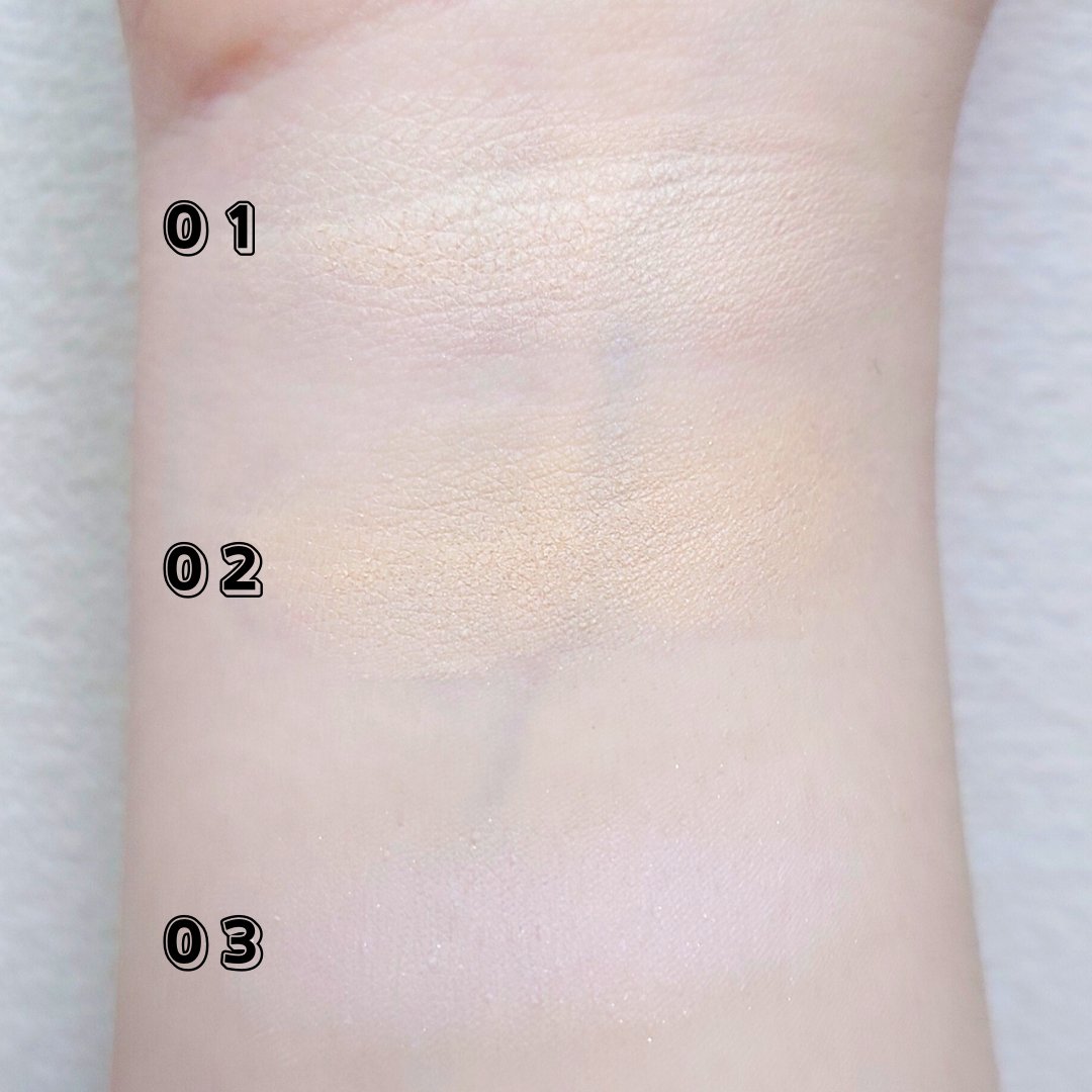 - <01 ライト> タルク、マイカ、トリ(カプリル酸/カプリン酸)グリセリル、窒化ホウ素、シリカ、ジメチコン、ナイロンー12、メタクリル酸メチルクロスポリマー、合成ミツロウ、リンゴ酸ジイソステアリル、カプリル酸グリセリル、エチルヘキシルグリセリン、ステアリン酸ジメチコノール、水、酢酸トコフェロール、ダイヤモンド末、ハスエキス、BG、1,2ーヘキサンジオール、ペンチレングリコール、ヒアルロン酸Na、モモ果実エキス、ヒドロキシアセトフェノン、フェノキシエタノール、アセチルヒアルロン酸N a、加水分解ヒアルロン酸、加水分解ヒアルロン酸Na、ヒアルロン酸、酸化鉄、酸化チタン、香料 <02 ナチュラル> タルク、マイカ、トリ(カプリル酸/カプリン酸)グリセリル、窒化ホウ素、シリカ、ジメチコン、ナイロンー12、メタクリル酸メチルクロスポリマー、合成ミツロウ、リンゴ酸ジイソステアリル、カプリル酸グリセリル、エチルヘキシルグリセリン、ステアリン酸ジメチコノール、水、酢酸トコフェロール、ダイヤモンド末、ハスエキス、BG、1,2ーヘキサンジオール、ペンチレングリコール、ヒアルロン酸Na、モモ果実エキス、ヒドロキシアセトフェノン、フェノキシエタノール、アセチルヒアルロン酸N a、加水分解ヒアルロン酸、加水分解ヒアルロン酸N a、ヒアルロン酸、酸化鉄、酸化チタン、香料 <03 ラベンダー> タルク、マイカ、トリ(カプリル酸/カプリン酸)グリセリル、窒化ホウ素、シリカ、ジメチコン、ナイロンー12、メタクリル酸メチルクロスポリマー、合成フルオロフロゴパイト、合成ミツロウ、リンゴ酸ジイソステアリル、カプリル酸グリセリル、エチルヘキシルグリセリン、ステアリン酸ジメチコノール、酢酸トコフェロール、ダイヤモンド末、水、ハスエキス、BG、ローブッシュブルーベリー果実エキス、クマイチゴ果実エキス、マグワ果実エキス、1,2ーヘキサンジオール、ペンチレングリコール、ヒアルロン酸Na、ヒドロキシアセトフェノン、フェノキシエタノール、アセチルヒアルロン酸N a、加水分解ヒアルロン酸、加水分解ヒアルロン酸Na、ヒアルロン酸、酸化チタン、グンジョウ、赤201、香料