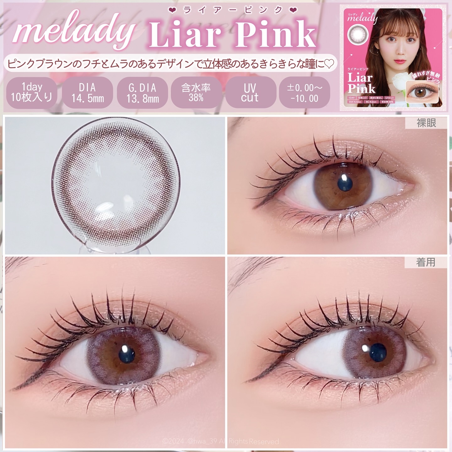 \ふわ淡ピンクの虜🪽🫧🎀💕︎/【meladyカラコンレポ🔍】𓊆商品名𓊇ミレディ#ライアーピンク◾︎スペック・1箱10枚入¥1,485・使用期間1day・レンズ直径(DIA)14.5mm・着色直径13.8mm・ベースカーブ8....