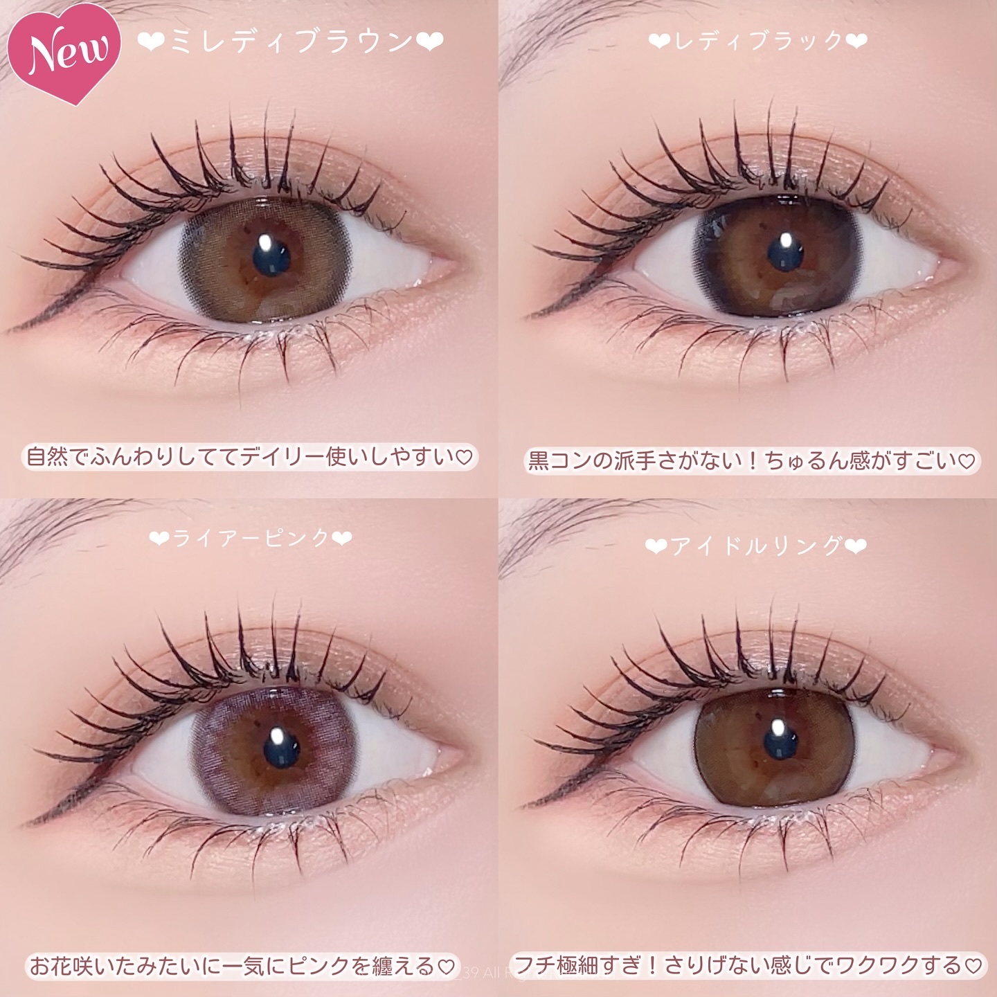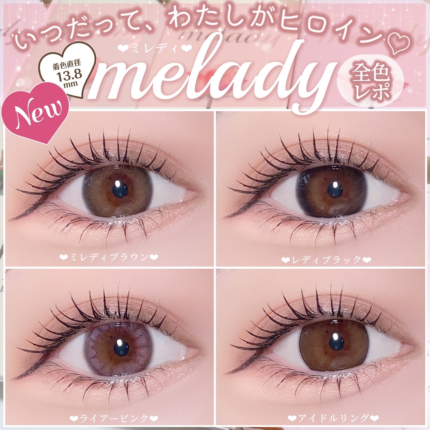 - ※2025年6月以降、商品パッケージ裏面・側面の一部表記を順次変更いたします。尚、これにかかる商品の交換・返品は承っておりません。 ヒロインの瞳の法則♡ ナチュラルなのにしっかり盛れるDIA14.5mm! ■ヒロインブラウン 透明感たっぷりなブラウンレンズ。瞳に馴染む色だからとってもナチュラル。 ■アイドルリング さりげない細フチとちゅるんブラウンがナチュラルに瞳を強調♡ ■ライアーピンク ピンクブラウンのフチとムラのあるデザインで立体感のあるきらきらな瞳を演出♡ ■レディブラック じゅわっとぼかした繊細なデザインで透明感に満ちた存在感のある瞳を演出♡ ■プリンセスショコラ しっかり太フチとあまくとろけるショコラブラウンでプリンセスみたいに愛される瞳に♡ ■スターグロー くりっと盛れる太フチとうるみツヤめく水光カラーで光を取りこむキラツヤな瞳に♡ ■Maria Ring(マリアリング) 絶妙細フチと白っぽ透明感グレージュでちょっぴり背伸びした余裕仕込みレンズ♡ ■Mermaid Ring(マーメイドリング) 絶妙太フチときらめき透明感マーメイドグレーでピュアにうるめく美少女な瞳に♡ カラーコンタクトレンズの不適正使用による眼障害の危険性等などがあります。 ●コンタクトレンズは高度管理医療機器です。不十分な洗浄・消毒など不適切なケアや、長時間・交換期間を超えた装用により、アレルギー性結膜炎、角膜感染症、角膜潰瘍等の重篤な眼障害が発生する危険性があります ●ご使用前に取扱説明書を確認してください 使用上の留意事項 ●眼科医院等を受診してからお求めください ●眼に異常を感じたら直ちにレンズ使用を中止し、お近くの眼科等で診察を受けてください ●医師の指示にしたがってご使用ください ●コンタクトレンズを装用する場合、自覚症状がなくても、眼科医院等での定期検査を受けてください ●レンズに不具合がある場合は使用しないでください