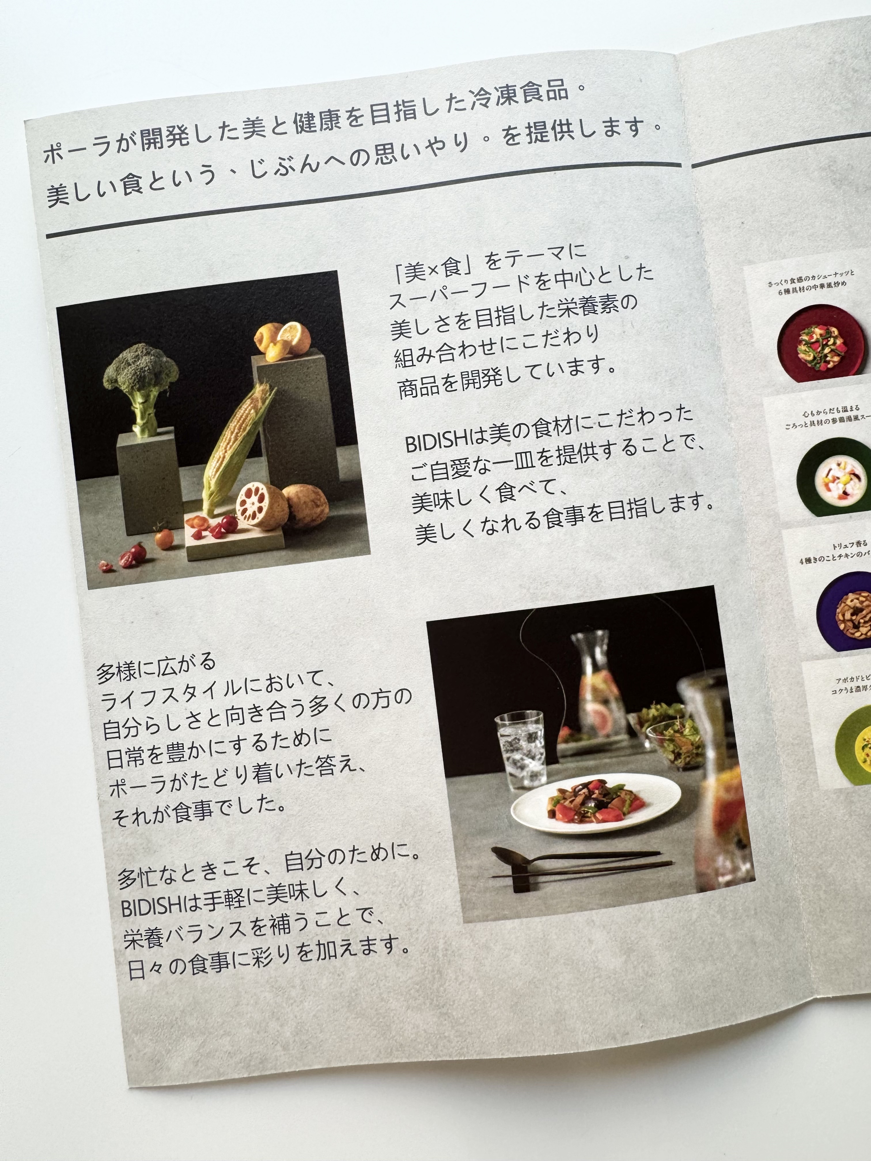 BIDISHは美と健康を提供するポーラから生まれた食の新規事業で、「食べることで、美しくなれる」をコンセプトに、科学的な研究データをもとに、美しさをサポートをする食事を提供してくれています。 FMR (脂肪対筋肉比)が良好な方、すなわち脂肪量が少なく、筋肉量が多い人は身体的に健康であるだけでなく、美しさも保ちやすい状態にあること スリムなパッケージで場所もとらず、電子レンジで温めるだけで食べられるので、日々忙しくも美容や健康に手を抜きたくない方にぴったり!