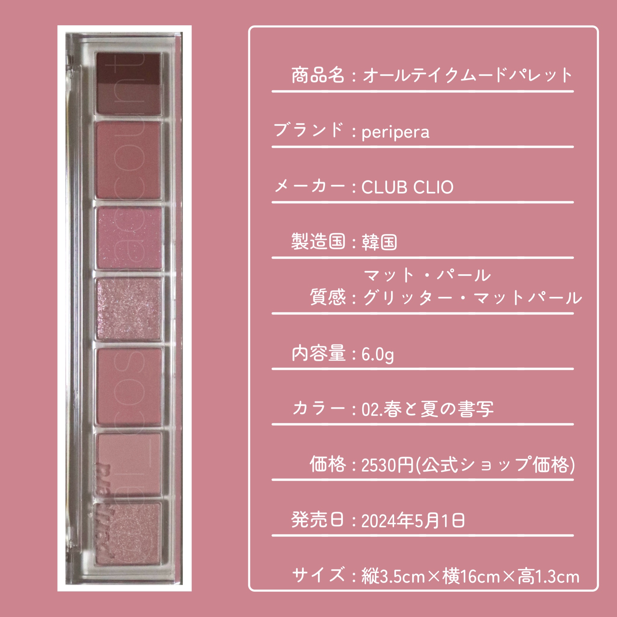PERIPERA オールテイクムードライクパレット | 3,080円 |