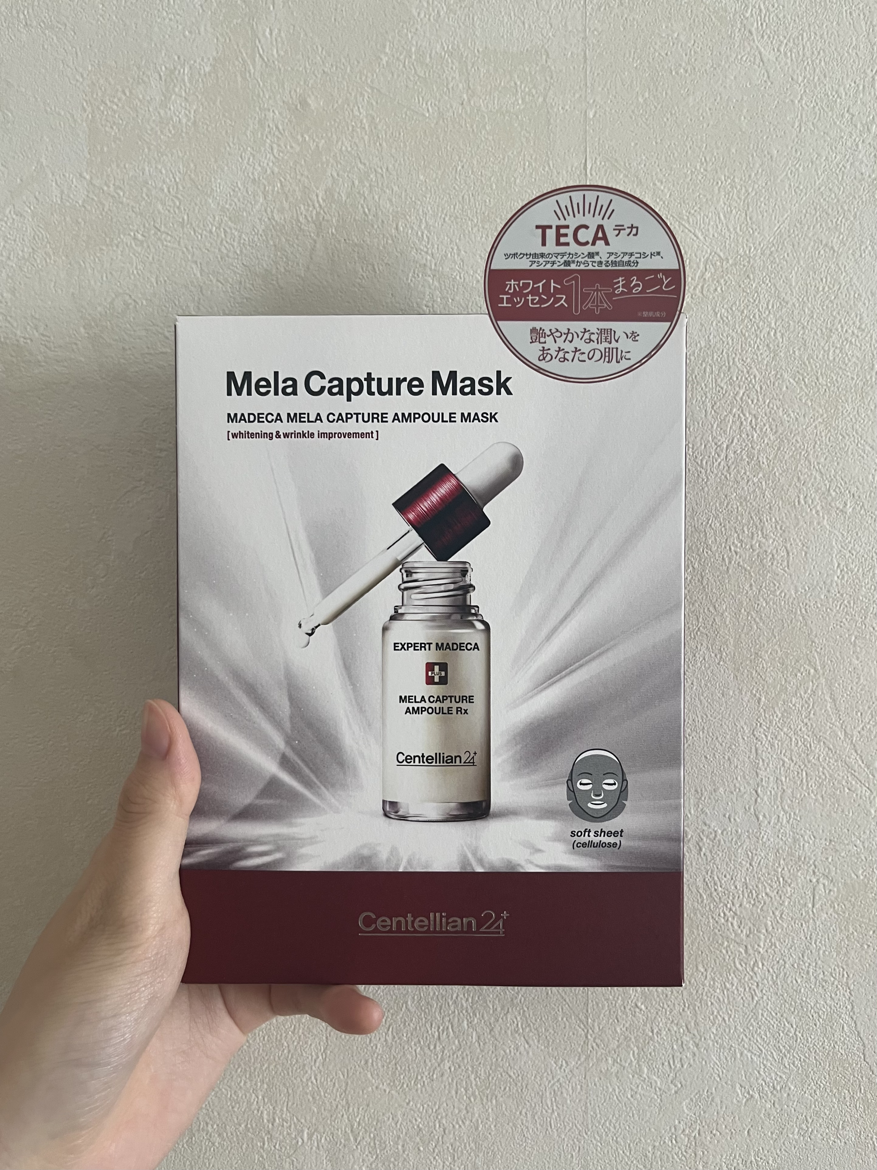 ドクターズコスメの実力派のセンテリアン24💕 たくさん好きな商品があるうちの1つ! メラキャプチャー アンプルっていう、美白に特化した美容液がたーっぷり入ってるマスク✨✨ 外したときに、白!!!!って思わず言ってしまうくらい、顔がトーンアップする💕💕