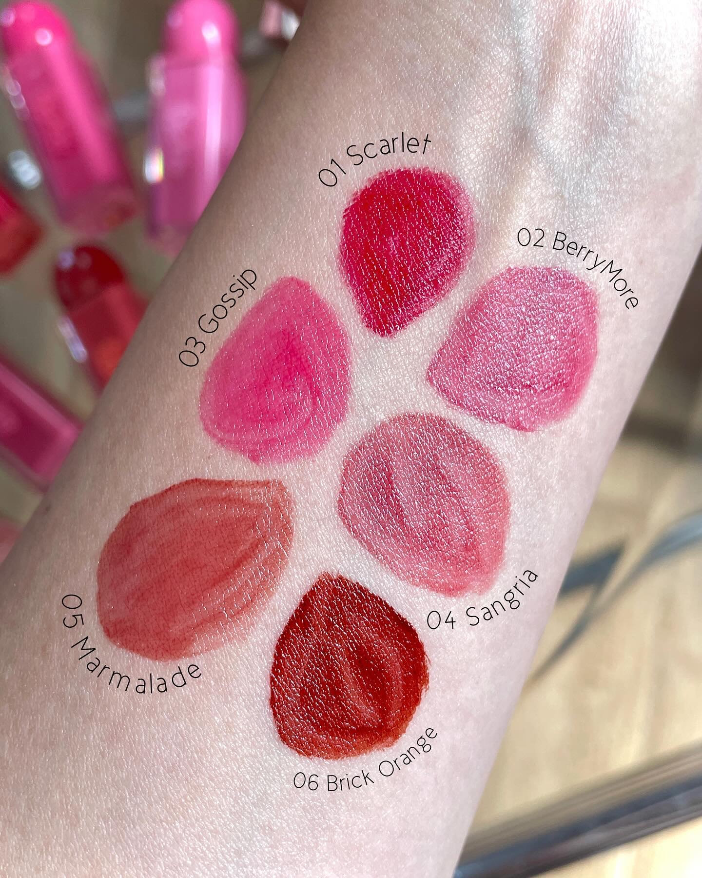 - <【旧】01 スカーレット(SCARLET)> 水、オクチルドデカノール、BG、ダイマージリノール酸水添ヒマシ油、DPG、ジグリセリン、ペンチレングリコール、(アクリル酸Na/アクリロイルジメチルタウリンNa)コポリマー、イソヘキサデカン、トリ(カプリル酸/カプリン酸)グリセリル、グリセリン、ステアリン酸ソルビタン、エチルセルロース、PEG-60水添ヒマシ油、ポリソルベート80、オレイン酸ソルビタン、エチルヘキシルグリセリン、エチレンジアミンジコハク酸3Na、没食子酸プロピル、セテアリルアルコール、フェノキシエタノール、赤227、黄5、赤104(1)、黄4 <【旧】02 ベリーモア(BERRY MORE)> 水、オクチルドデカノール、ダイマージリノール酸水添ヒマシ油、DPG、BG、ジグリセリン、グリセリン、ペンチレングリコール、(アクリル酸Na/アクリロイルジメチルタウリンNa)コポリマー、トリ(カプリル酸/カプリン酸)グリセリル、ステアリン酸ソルビタン、エチルセルロース、イソヘキサデカン、PEG-60水添ヒマシ油、ポリソルベート80、エチルヘキシルグリセリン、オレイン酸ソルビタン、エチレンジアミンジコハク酸3Na、オキシ水酸化Al、ポリアクリル酸アンモニウム、没食子酸プロピル、セテアリルアルコール、フェノキシエタノール、酸化チタン、赤227、黄4、赤104(1)、青1 <【旧】03 ゴシップ(GOSSIP)> 水、オクチルドデカノール、ダイマージリノール酸水添ヒマシ油、DPG、BG、ジグリセリン、グリセリン、ペンチレングリコール、(アクリル酸Na/アクリロイルジメチルタウリンNa)コポリマー、トリ(カプリル酸/カプリン酸)グリセリル、ステアリン酸ソルビタン、イソヘキサデカン、エチルセルロース、PEG-60水添ヒマシ油、ポリソルベート80、オレイン酸ソルビタン、エチルヘキシルグリセリン、エチレンジアミンジコハク酸3Na、オキシ水酸化Al、ポリアクリル酸アンモニウム、没食子酸プロピル、セテアリルアルコール、フェノキシエタノール、酸化チタン、赤104(1)、赤227、黄4、黄5、青1 <【旧】04 サングリア(SANGRIA)> 水、オクチルドデカノール、ダイマージリノール酸水添ヒマシ油、DPG、BG、ジグリセリン、グリセリン、ペンチレングリコール、(アクリル酸Na/アクリロイルジメチルタウリンNa)コポリマー、トリ(カプリル酸/カプリン酸)グリセリル、ステアリン酸ソルビタン、エチルセルロース、イソヘキサデカン、PEG-60水添ヒマシ油、ポリソルベート80、エチルヘキシルグリセリン、オレイン酸ソルビタン、エチレンジアミンジコハク酸3Na、オキシ水酸化Al、ポリアクリル酸アンモニウム、没食子酸プロピル、セテアリルアルコール、フェノキシエタノール、酸化チタン、赤227、黄4、黄5、赤104(1)、青1 <【旧】05 マーマレード(MARMALADE)> 水、オクチルドデカノール、ダイマージリノール酸水添ヒマシ油、DPG、BG、ジグリセリン、グリセリン、ペンチレングリコール、(アクリル酸Na/アクリロイルジメチルタウリンNa)コポリマー、トリ(カプリル酸/カプリン酸)グリセリル、ステアリン酸ソルビタン、エチルセルロース、イソヘキサデカン、PEG-60水添ヒマシ油、ポリソルベート80、エチルヘキシルグリセリン、オレイン酸ソルビタン、エチレンジアミンジコハク酸3Na、オキシ水酸化Al、ポリアクリル酸アンモニウム、没食子酸プロピル、セテアリルアルコール、フェノキシエタノール、酸化チタン、黄4、赤227、黄5、青1 <【旧】06 ブリックオレンジ(BRICK ORANGE)> 水、オクチルドデカノール、ダイマージリノール酸水添ヒマシ油、DPG、BG、ジグリセリン、グリセリン、ペンチレングリコール、(アクリル酸Na/アクリロイルジメチルタウリンNa)コポリマー、イソヘキサデカン、トリ(カプリル酸/カプリン酸)グリセリル、ステアリン酸ソルビタン、エチルセルロース、PEG-60水添ヒマシ油、ポリソルベート80、オレイン酸ソルビタン、エチルヘキシルグリセリン、エチレンジアミンジコハク酸3Na、オキシ水酸化Al、ポリアクリル酸アンモニウム、没食子酸プロピル、セテアリルアルコール、フェノキシエタノール、黄4、赤227、黄5、酸化チタン、青1