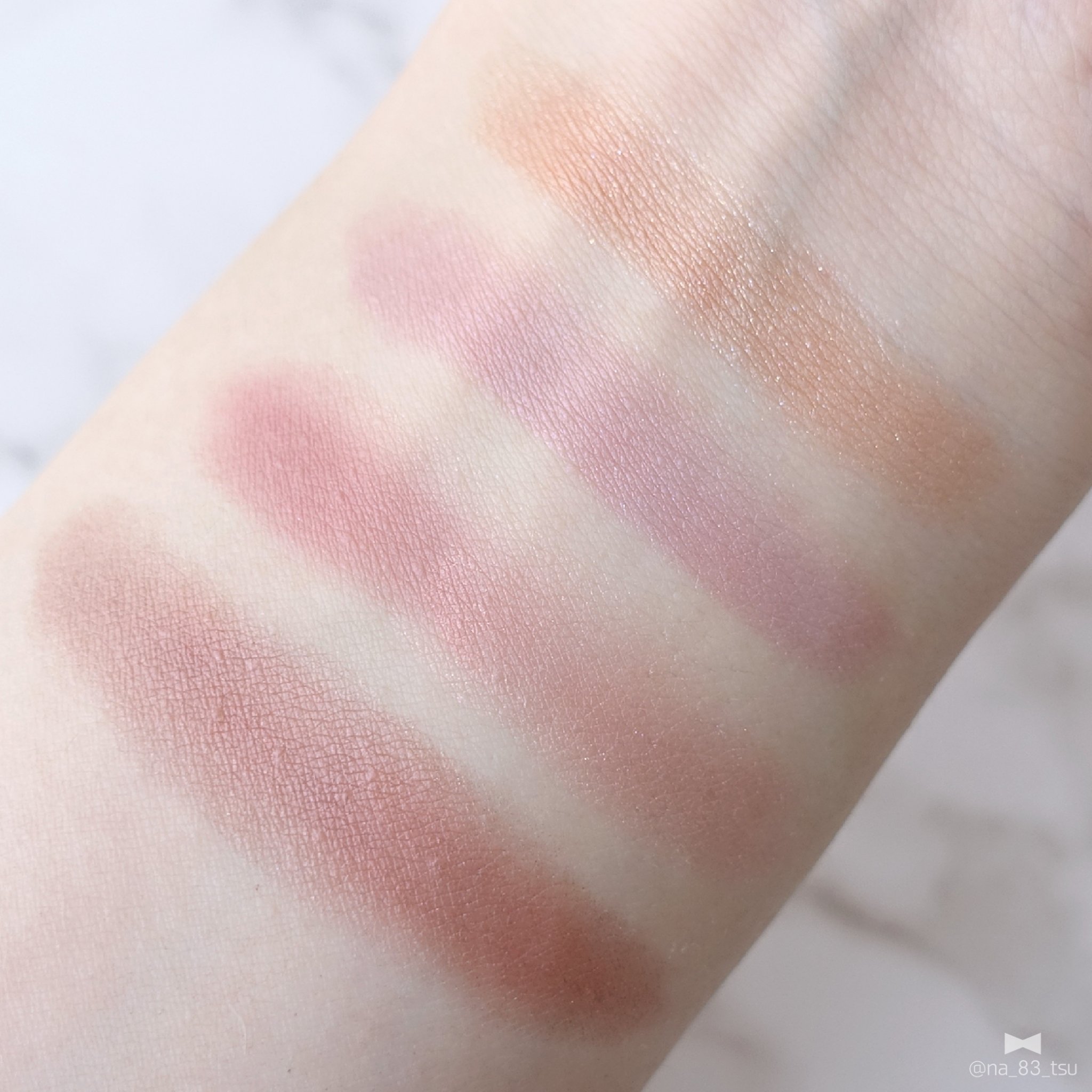 一見濃いパープルに見えるんですが、 頬に乗せるとふわっと青みのローズに発色して 凄く可愛い!! シアーな発色のチークだから濃さを調整しやすくて 使いやすい◎ 繊細なパールも入ってるからほおからツヤっと 綺麗に見えてとっても良い!