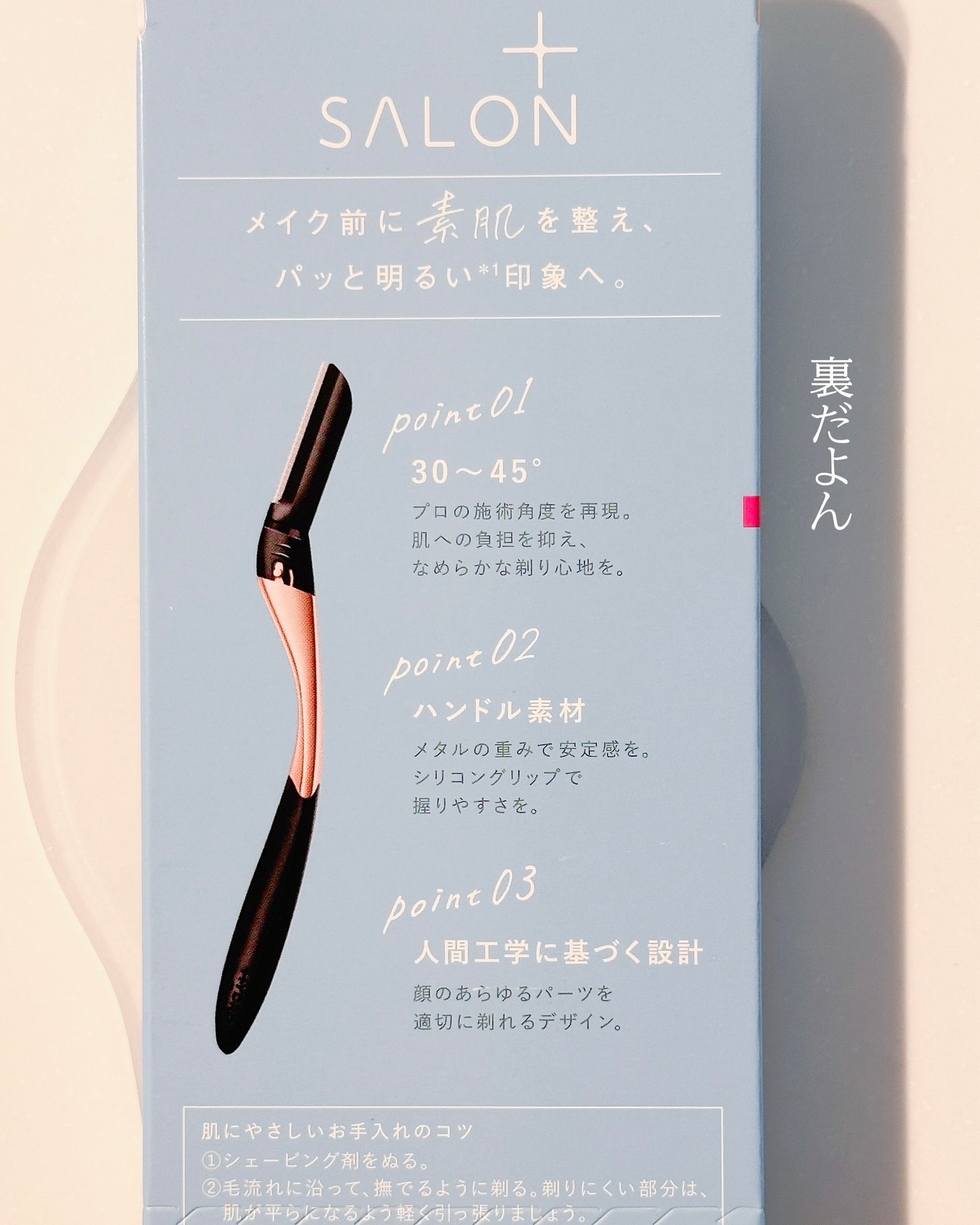 【スッと滑らかにお顔をすべる🌊SALON+の顔用カミソリ】滑らかな剃り心地と持ちやすさで愛用しているSALON+の顔用カミソリ!角質・うぶ毛をケアしてトーンアップ*し、透明感**ある仕上がりを目指せるみたい〇*うぶ毛を取り除くことによる肌色の...
