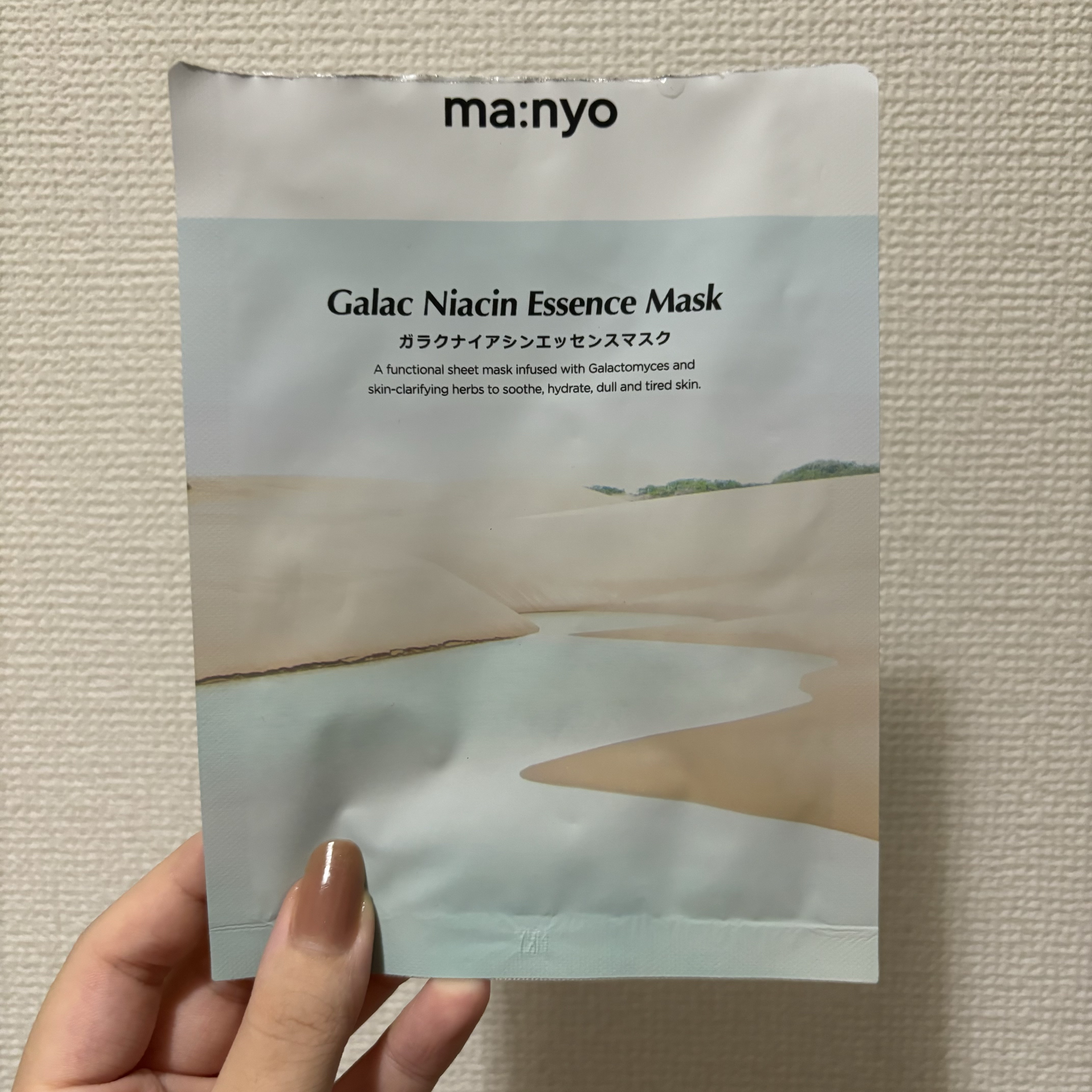 manyoガラクナイアシンエッセンスマスク美容液がたっぷりヒタヒタに染み込まれていてプルプルな感じの触り心地のマスク😊肌にもしっかりと密着してくれます👍! 100%竹から作られたシートみたいです🙄ヒアルロン酸の保湿でしっとりもち肌に✨液がたっ...