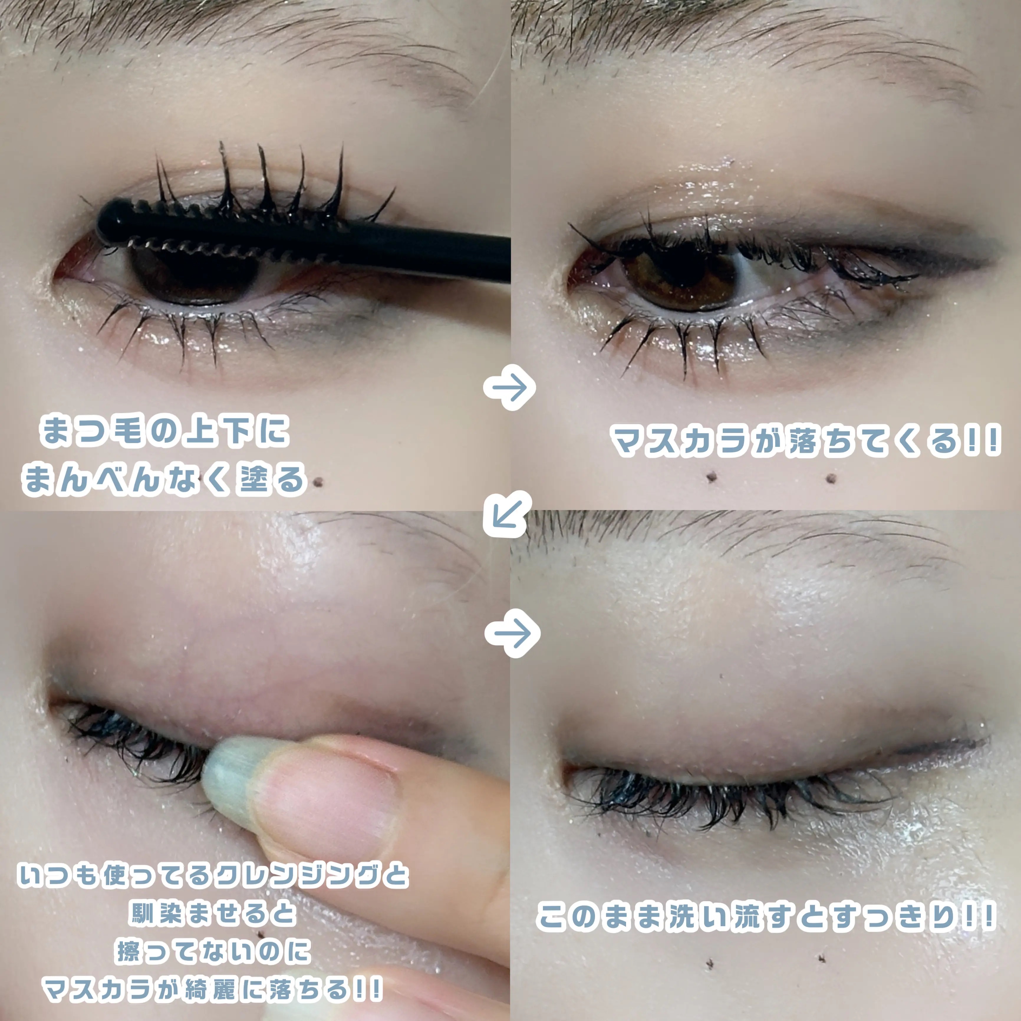 まつ毛の束感の作り方⤵︎⤵︎⤵︎ クマの隠し方と眉毛については後日詳しく紹介します.ᐟ .ᐟ 特にクマの隠し方はめちゃめちゃおすすめの方法なのでビフォーアフターで紹介します!