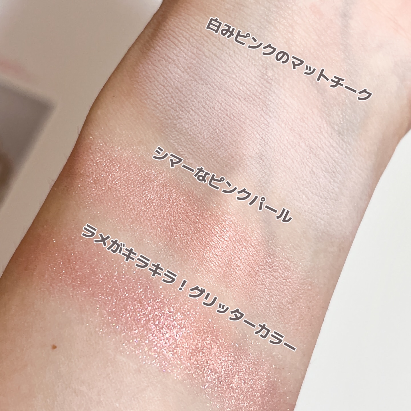 商品自体は肌にのせると上品にペカっと光って綺麗なツヤ感で 私は好きです! 言われてる粉感や粉飛びは全然気にならない。 見た目はとってもかわいいし、使いやすいハイライトなのでハマる人はハマると思います! 特に個性的ではなく、わりとありがちな光り方のハイライトで3000円弱はちょっと割高に感じました。