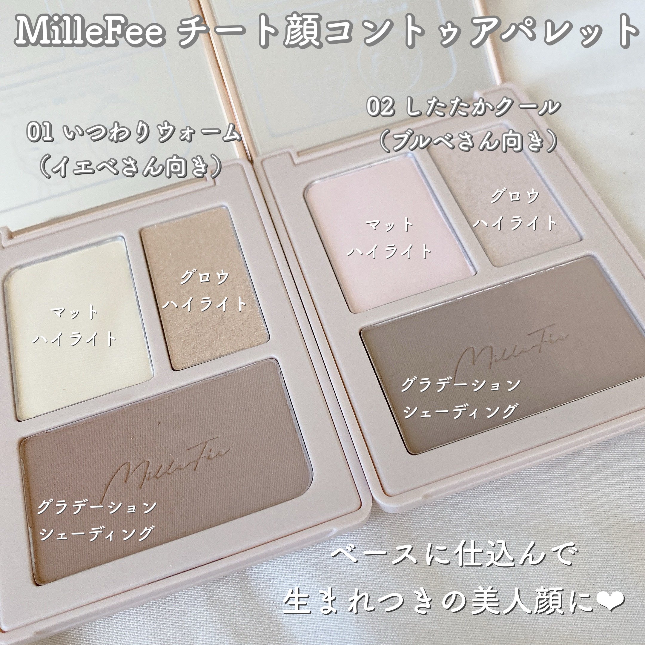 SNSでも人気なミルフィーのチート顔コントゥアパレット🪄🎨⚜️MilleFéeチート顔コントゥアパレット02したたかクールマットハイライトを仕込むことでナチュラルに立体感を演出してくれて、影色も黄みも赤みもなく本物の影って感じの絶妙カラーで自...