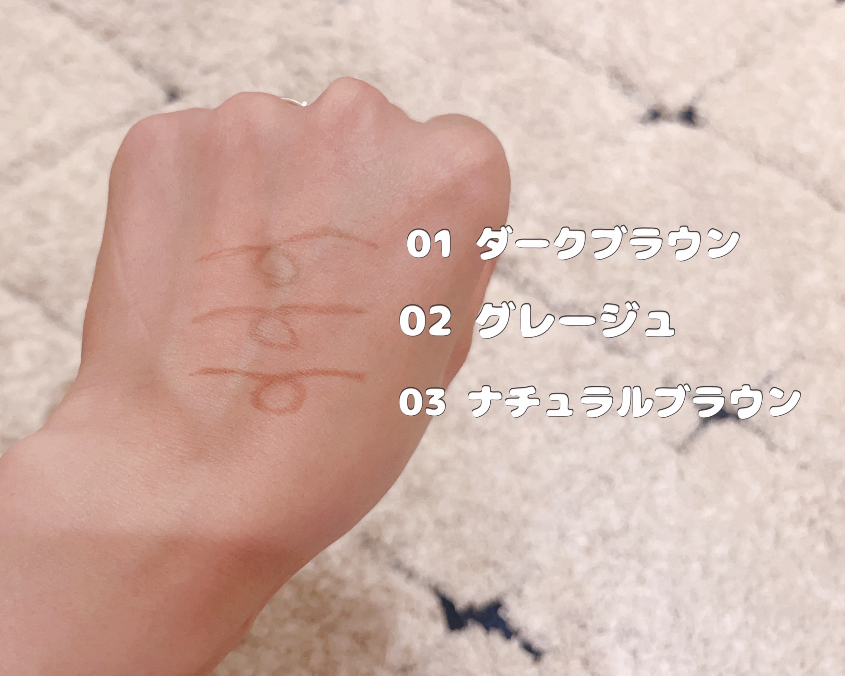 - <01 ダークブラウン> ステアリン酸、水添ヒマシ油、モクロウ、ダイマージリノール酸(フィトステリル/イソステアリル/セチル/ステアリル/べヘニル)、トリ(カプリル酸/カプリン酸)グリセリル、セスキオレイン酸ソルビタン、水酸化Al、ジメチコン、トコフェロール、スクワラン、ホホバ種子油、(+/-)酸化鉄、酸化チタン、マイカ <02 グレージュ> ステアリン酸、水添ヒマシ油、モクロウ、ダイマージリノール酸(フィトステリル/イソステアリル/セチル/ステアリル/べヘニル)、トリ(カプリル酸/カプリン酸)グリセリル、セスキオレイン酸ソルビタン、水酸化Al、ジメチコン、トコフェロール、スクワラン、ホホバ種子油、(+/-)酸化鉄、酸化チタン、マイカ <03 ナチュラルブラウン> ステアリン酸、水添ヒマシ油、モクロウ、ダイマージリノール酸(フィトステリル/イソステアリル/セチル/ステアリル/べヘニル)、トリ(カプリル酸/カプリン酸)グリセリル、セスキオレイン酸ソルビタン、水酸化Al、ジメチコン、トコフェロール、スクワラン、ホホバ種子油、(+/-)酸化鉄、酸化チタン、マイカ <101 ピンクグレージュ> ステアリン酸、水添ヒマシ油、モクロウ、ダイマージリノール酸(フィトステリル/イソステアリル/セチル/ステアリル/べヘニル)、トリ(カプリル酸/カプリン酸)グリセリル、セスキオレイン酸ソルビタン、水酸化Al、ジメチコン、トコフェロール、スクワラン、ホホバ種子油、(+/-)酸化鉄、酸化チタン、マイカ