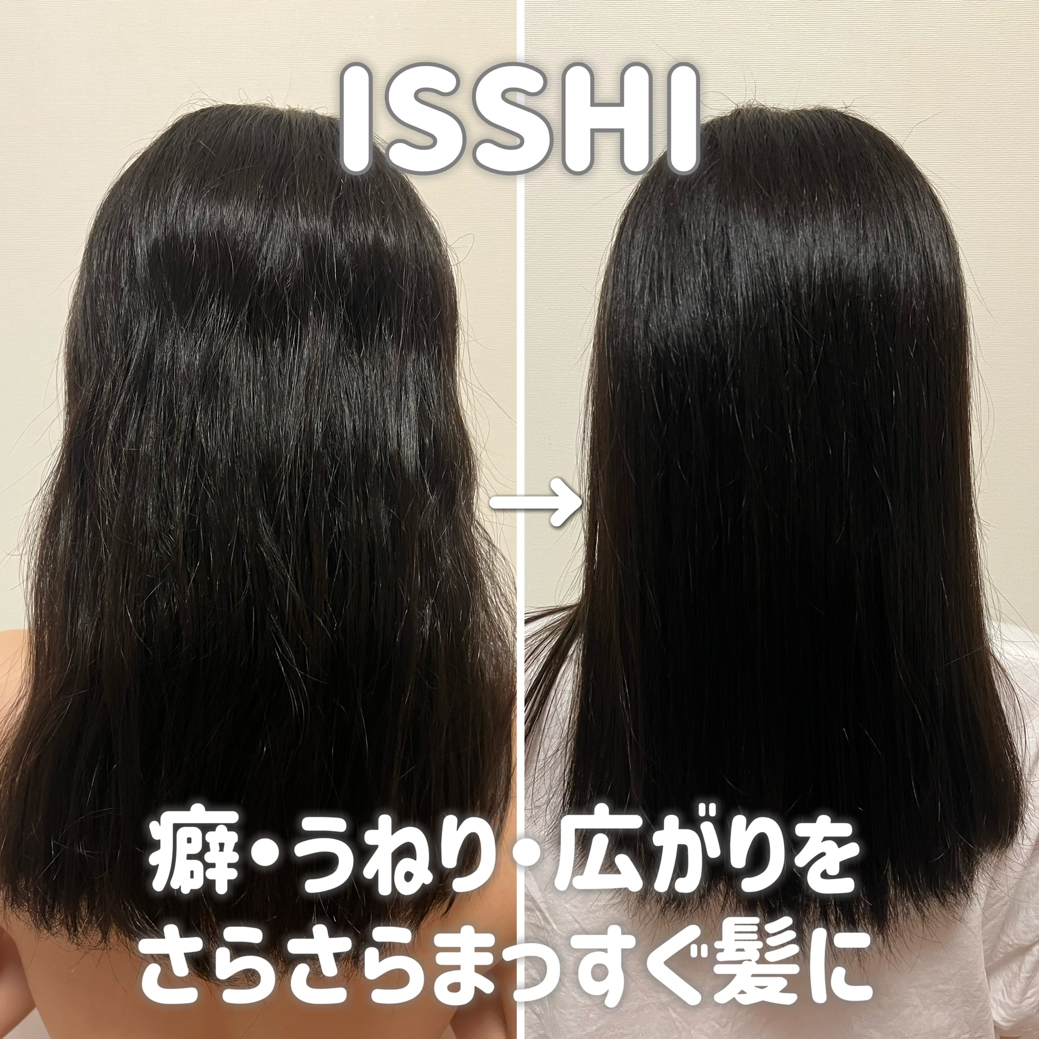 こちらのアイテムは、ブリーチやカラー、パーマによるダメージ髪でお悩みの方へ向けた商品です。 こちらのヘアミルクを使うとすとんとまとまり感がアップして髪質も柔らかくなった気がします。 ISSHIシリーズの中でこのヘアミルクが1番気に入っています!