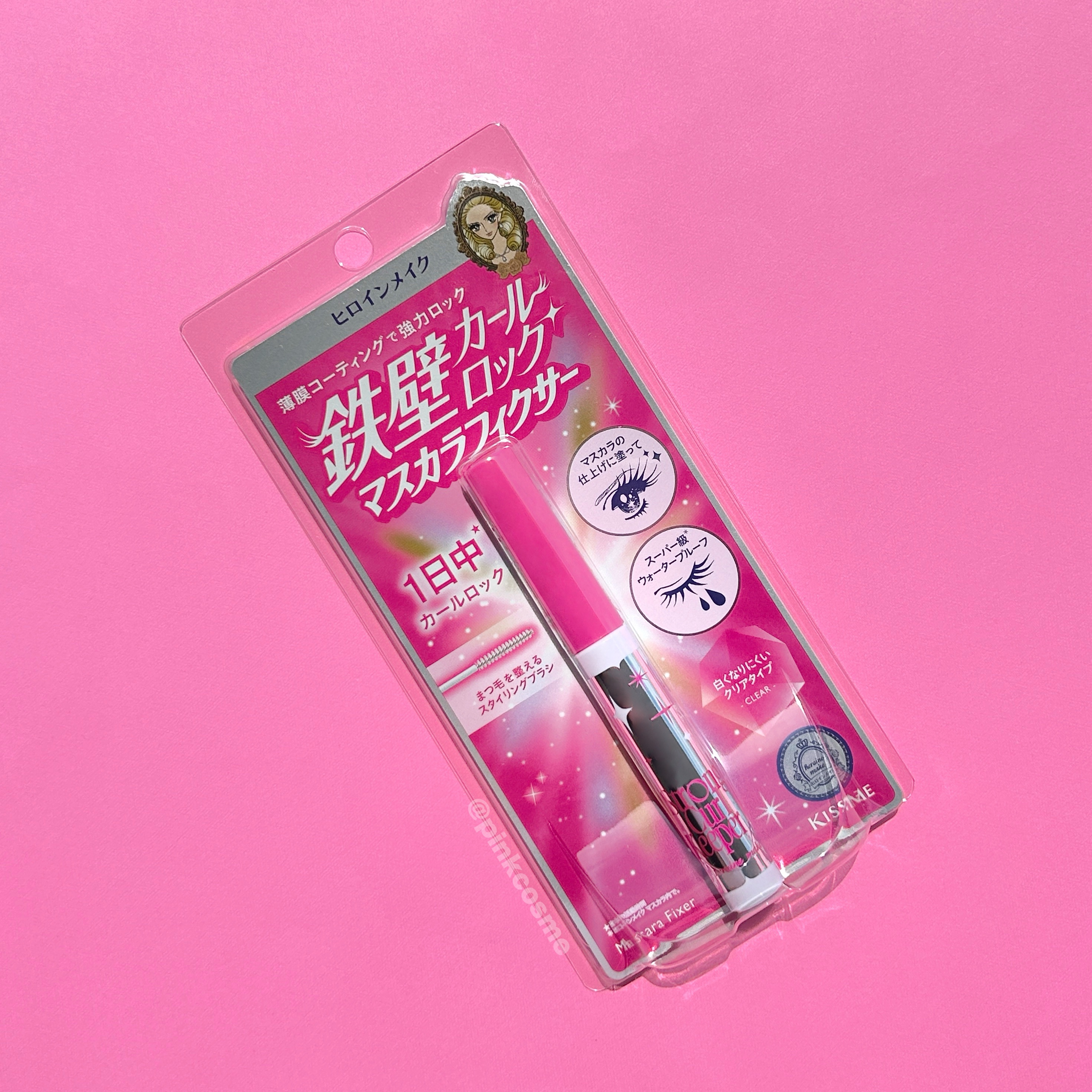 - ヒロインメイクから、マスカラの仕上げに塗ることで、ヒロイン級の上向きカールを強力固定するマスカラフィクサーが新登場! 涙・汗・皮脂・湿気に負けないにじみバリア処方のスーパー級※1ウォータープルーフ。 パンダ目を防御し、1日中※2カールをキープします。 どんなマスカラとも相性が良いツヤのあるクリアタイプ。 ■マスカラの仕上げに塗って、カールを強力固定! 上向きカールを強力固定するカールロック成分と、先に塗ったマスカラを損なわない薄膜コーティング処方で、塗りたての仕上がりを鉄壁のように1日中※1強力キープします。 ※1 日中の活動時間 ■パンダ目防御!スーパー級※2ウォータープルーフ にじみバリア処方 涙・汗・皮脂・湿気に負けないにじみバリア処方。 ※2 ヒロインメイク マスカラ内で。 ■白くなりにくいツヤのあるクリアタイプ お手持ちの様々なマスカラにも重ねやすいクリアタイプ。 ■まつ毛をとかして整える スタイリングブラシ 適度なコシで、まつ毛をとかして美しく整えることのできるスタイリングブラシを採用。 ■まつ毛美容液成分配合で、メイクしながらトリートメント ツバキオイル・ローヤルゼリーエキス・アルガンオイル・野バラオイル(カニナバラ果実油)・オタネニンジンエキス・アーモンドオイル配合。 (まつ毛保護成分) ●中身をブラシでよくかき混ぜ、しっかりブラシに液をつけてから使用することをおすすめします。 ●お手持ちのマスカラを塗り、乾いた上からお使いください。液が白く固まる場合がありますので、塗りすぎないようご注意ください。 ●ご使用後は、ティッシュペーパーなどでブラシをふいてください。 ●落とすときはヒロインメイクのマスカラリムーバー、または油性クレンジング料をお使いください。 ●ブラシへのつきが少なくなった場合は、容器の壁面についている液をブラシで軽くかき混ぜてからお使いください。 ※1 ヒロインメイク マスカラ内で。 ※2 日中の活動時間