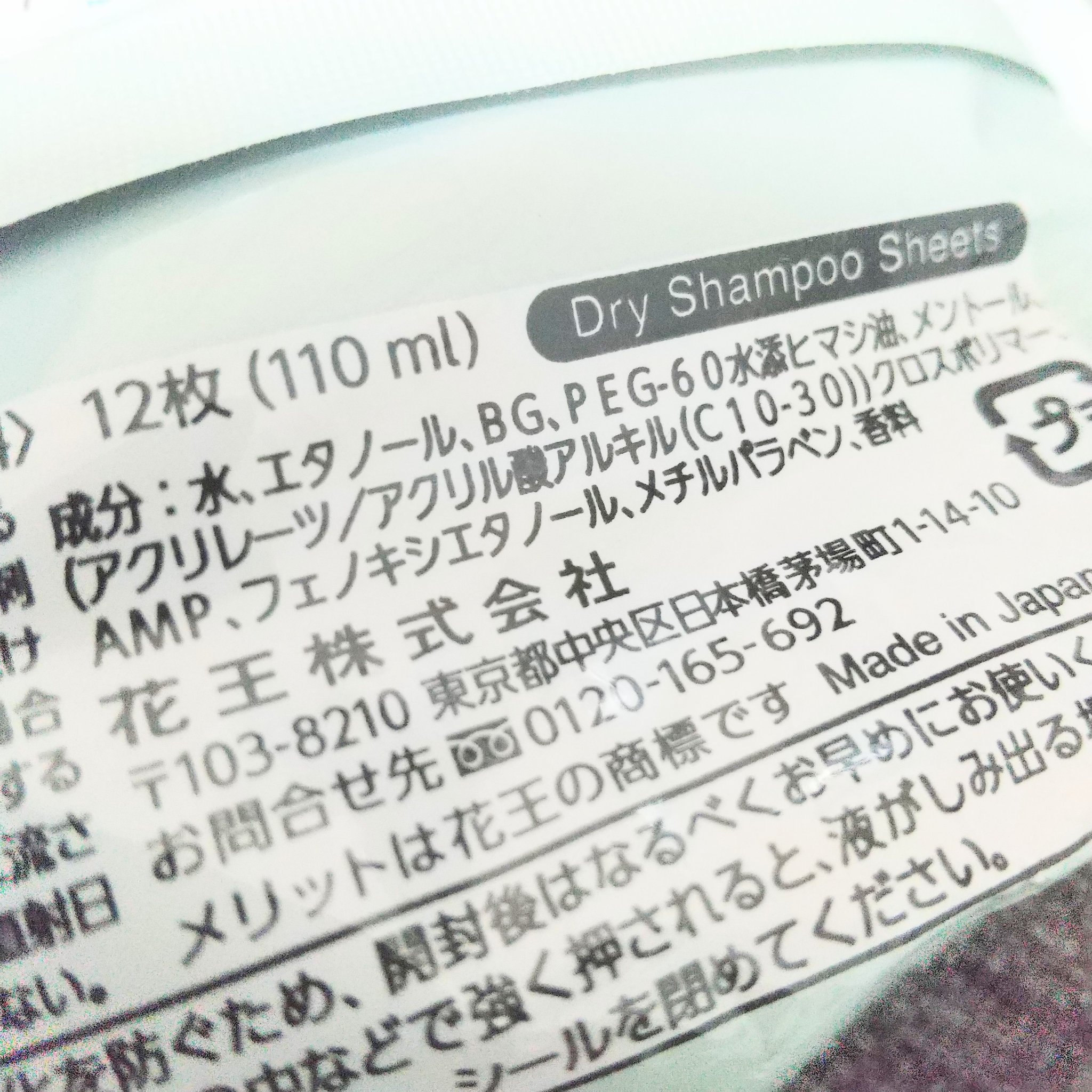 - 12枚入り(メリットDAY+ ドライシャンプーシート)