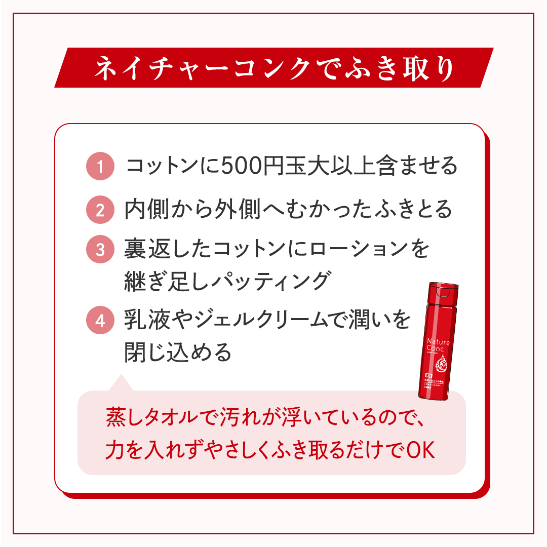 ネイチャーコンクの使い方古い角質や汚れをふき取りクリアな肌を叶えるふきとり化粧水。気になるけど使った事がないと言う方もいらっしゃるのでは?ふきとり化粧水のイメージ・毛穴汚れが気になるときに使うもの・オイリー肌の人むけ・こするから肌に良くない・...