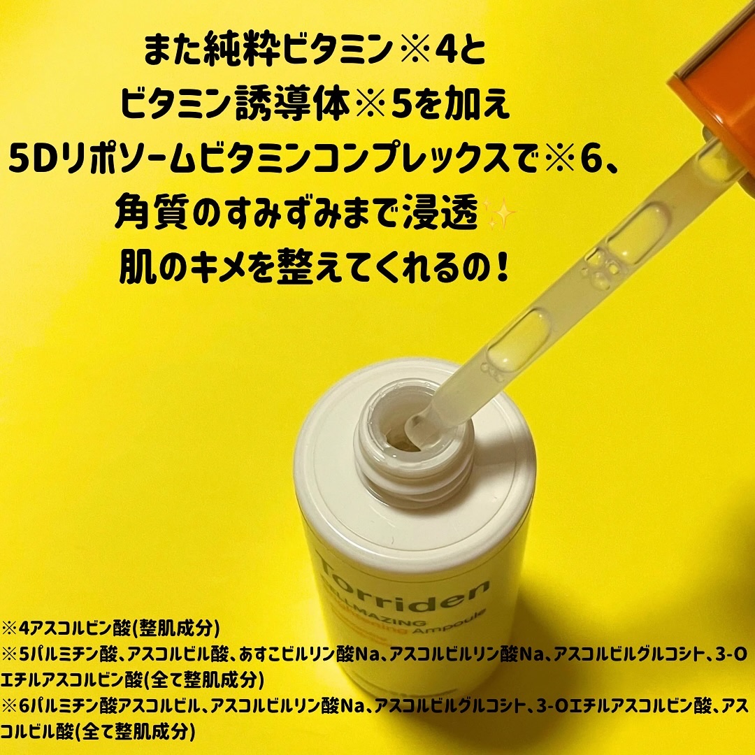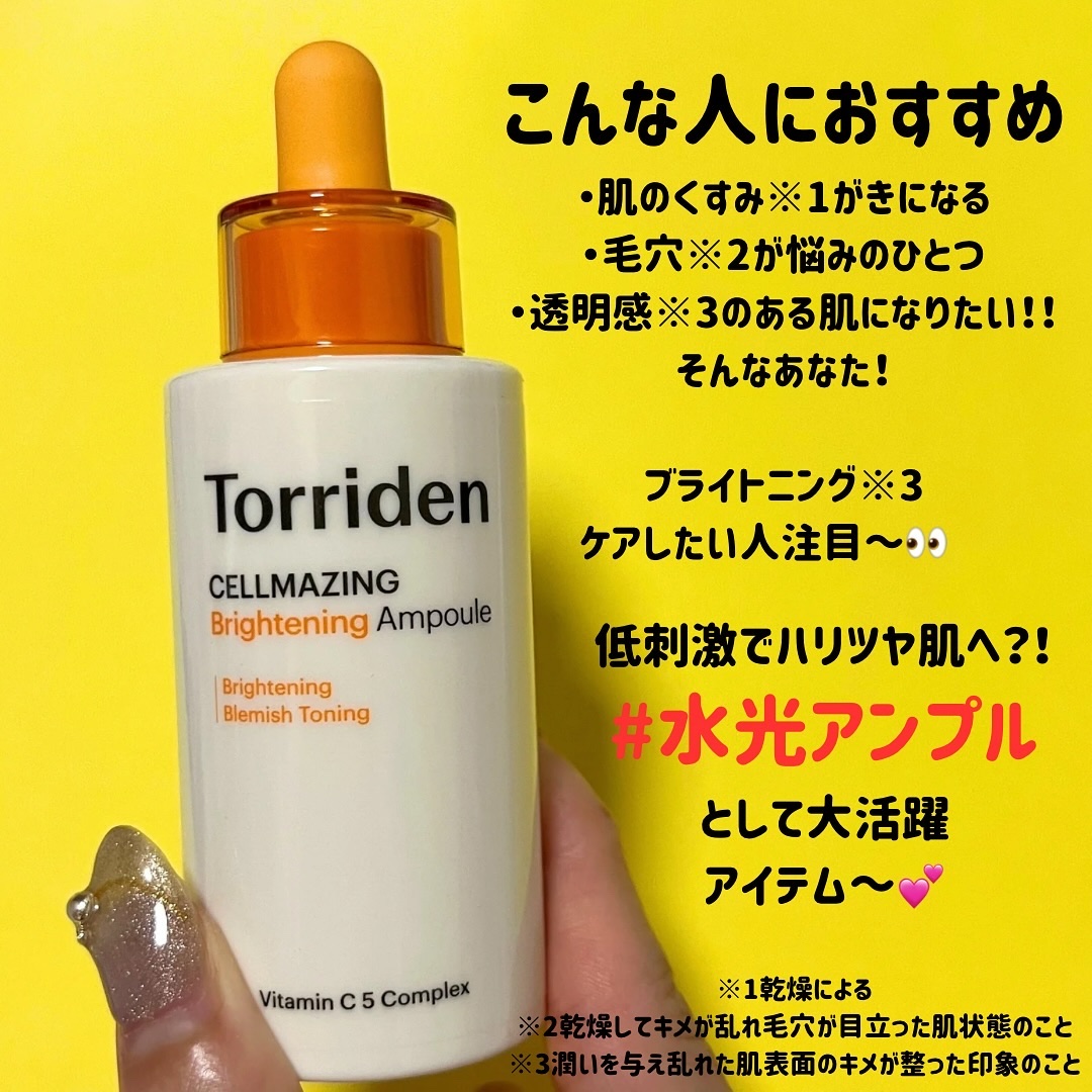 ハリツヤ肌へ #水光アンプル Torriden (トリデン) @torriden_jp セルメイジング ビタC ブライトニングアンプル 純粋ビタミンC+ビタミンC誘導体をリポソーム化 サイズの異なる5種類のビタミンCを配合 ベタつきを気にしないで使える使用感♡