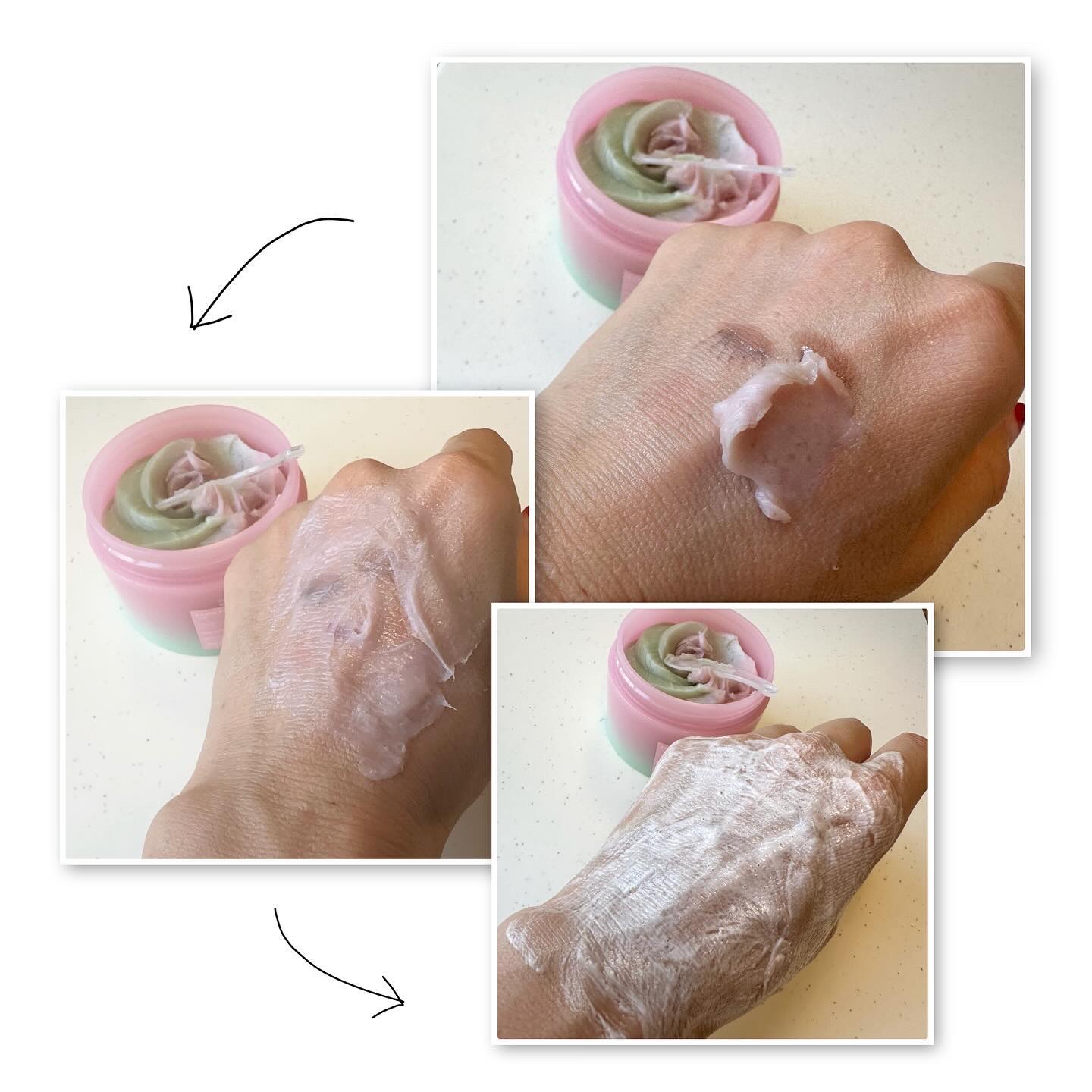 APRILSKINピンクアロエメレンゲクレンザー洗顔、パックにも使える新感覚2wayクレンザー🫧ピンクアロエや豆スクラブ、グリーンの部分はツボクサエキスや緑豆スクラブなどが配合されてるみたい🌿✨肌表面のザラつきを滑らかにしてくれて、汚れもスッ...