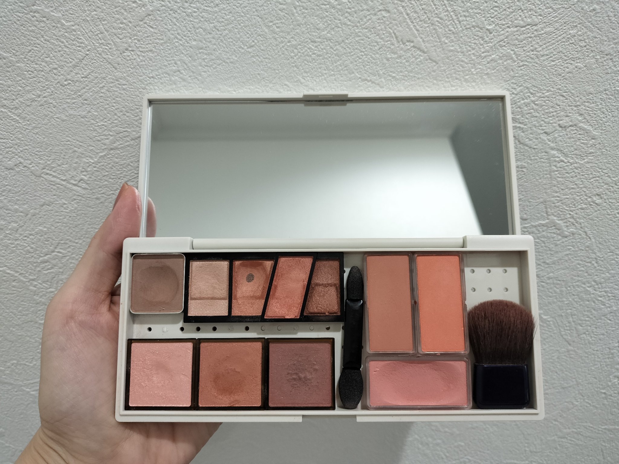 ライトコーラルは大人も使いやすいラメで好き モーヴベージュは影をつけるのにいいかも 046ホワイトベージュが底見えした! 眉毛の上下のハイライトに使っていて、メイクしたてはいいけど、前髪で隠れるし意味ないかも? リピはなし