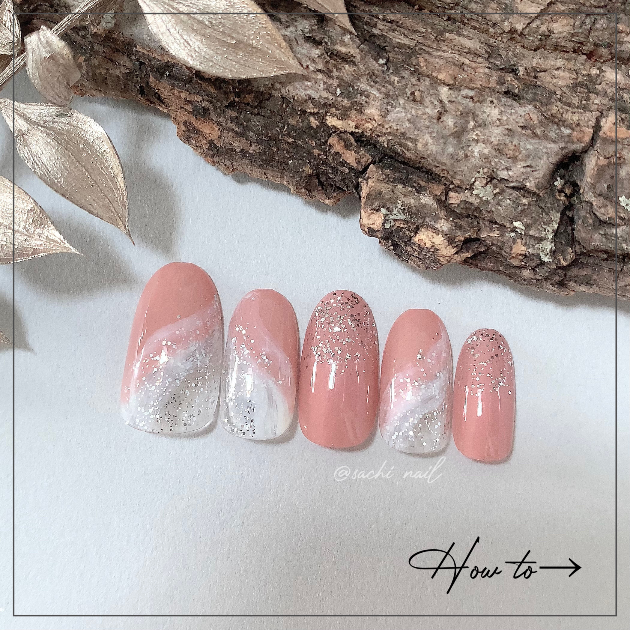ワンカラーでも指ごとに色を変えるだけでオシャレに見えます💕 画像のようにゴールドラインとストーンを少し足すだけで華やかさがアップ🥰 何度かご紹介したことのあるスポンジで作るグラデーションです✨ スポンジを使うことで境目が綺麗に馴染んでくれます💕 アルミホイルの上でブラウンとトップコートを1:1くらいで混ぜたものを、トップコートのハケに取って3箇所に塗るだけ👌 事前に混ぜたものを塗ることで、爪の上でぼかすより簡単に出来ます💕 ベースカラーが乾く前に点置きしてぼかすことで綺麗にぼかせます✨ スピードが大事なので、使うポリッシュのキャップは全て開けておきましょう😊 天然石のラインはガタガタの方がより天然石っぽく見えるので、ラインを描くのが苦手な方でも大丈夫🙆♀️ 難しそうに見えて、やってみると意外と簡単に出来ます♡