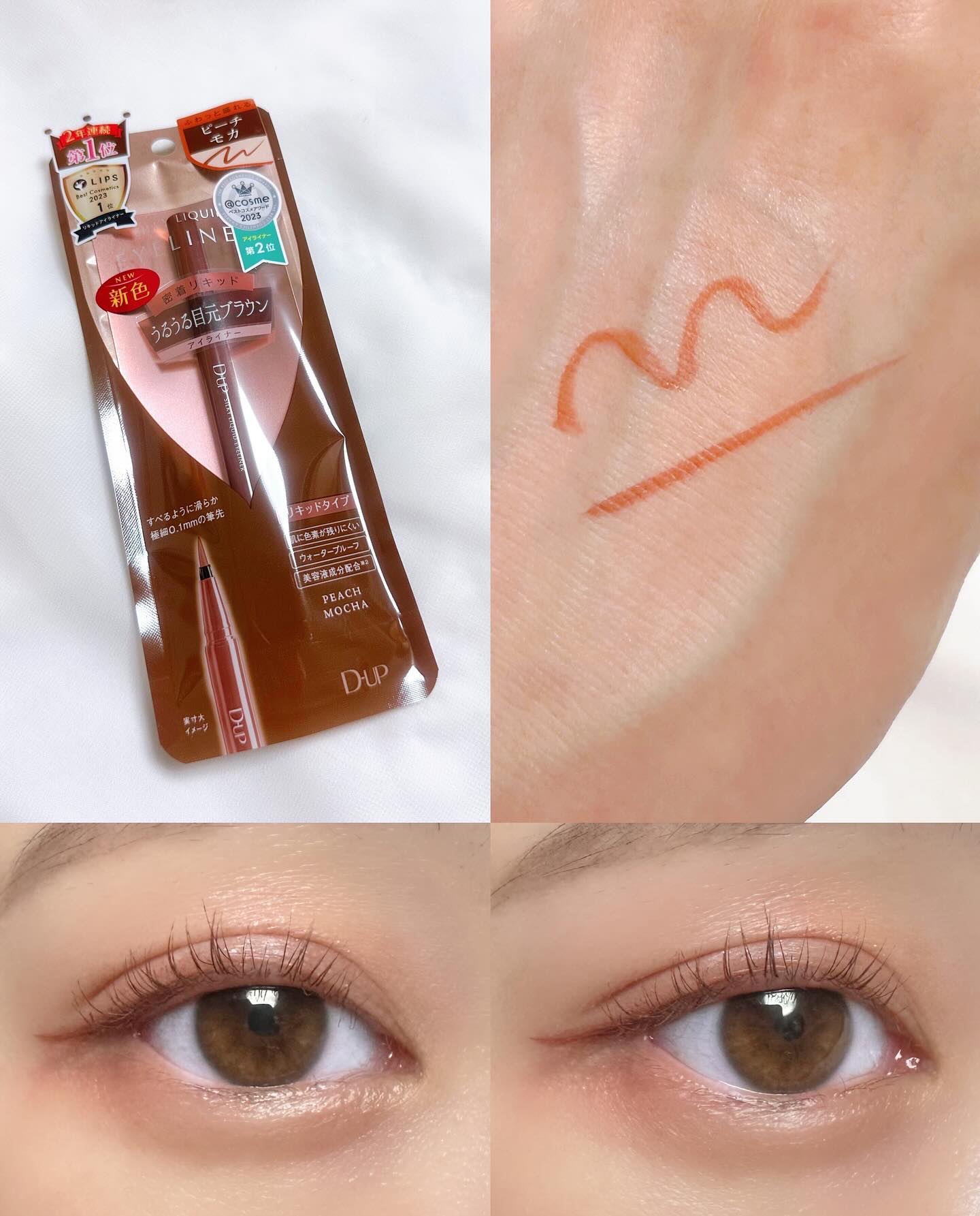 D-UPのアイライナーは、なめらかな描き心地で細い線も描きやすい!! 汗や涙にも強く、落ちにくいです。 カラー展開豊富で、オシャレなカラーが多い♡ ダークフィグは、赤みのある焦げ茶っぽいカラー。 ブラックに比べで肌馴染みがよく、程よい抜け感が出て、他には中々ない色味でお気に入り♡