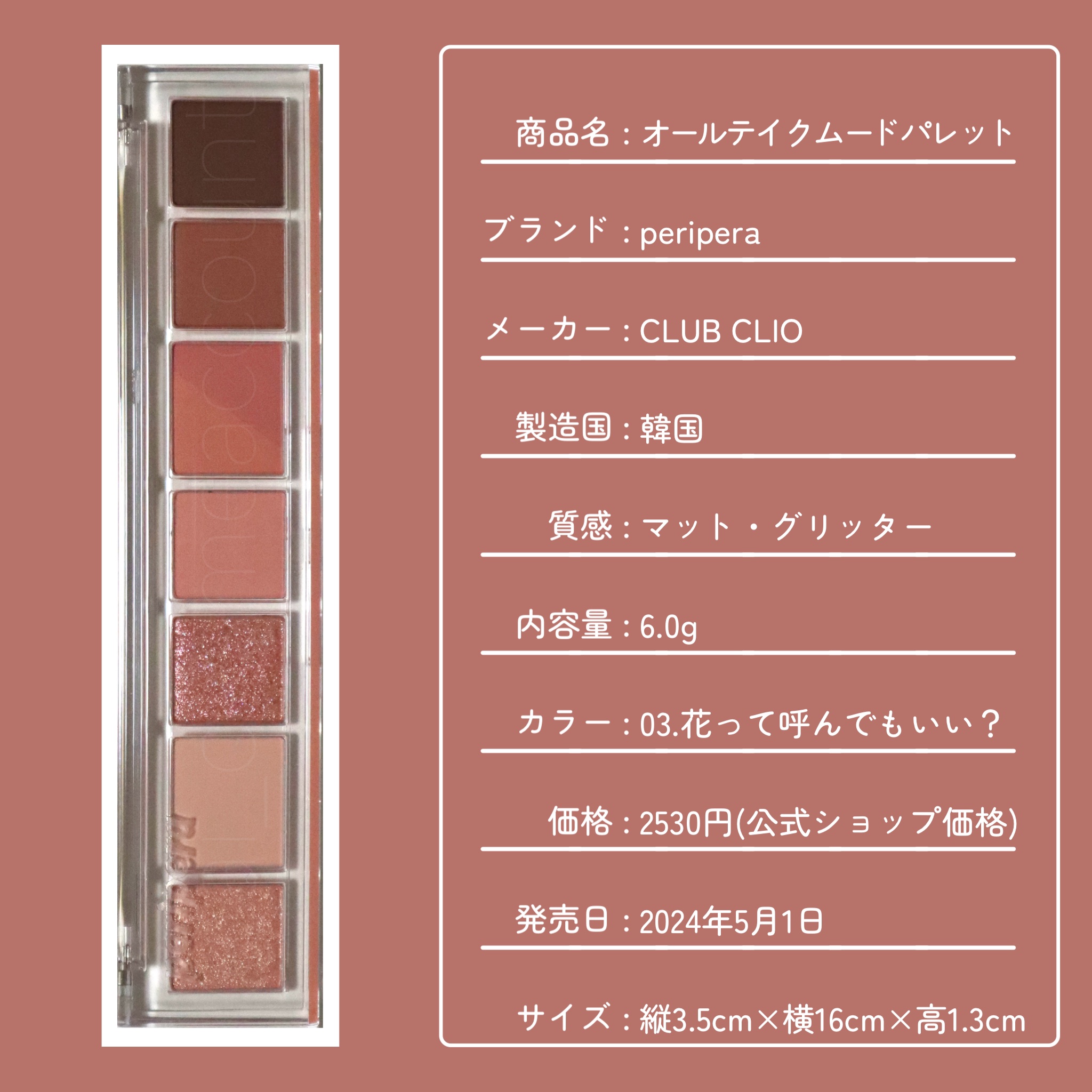PERIPERA オールテイクムードライクパレット | 3,080円 |