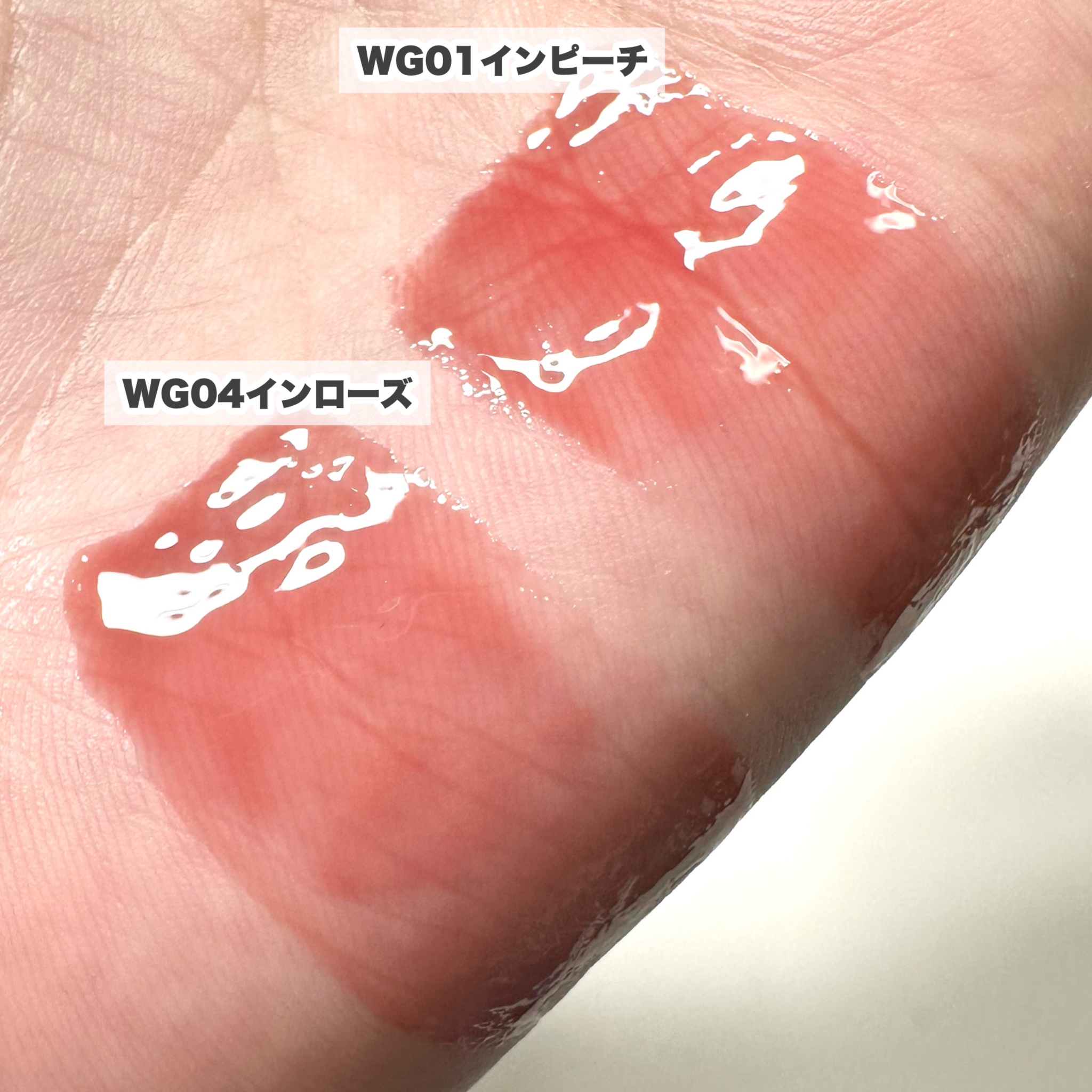 - <WG01 インピーチ(IN PEACH)> オクチルドデカノール、水、リンゴ酸ジイソステアリル、グリセリン、水添ポリイソブテン、ダイマージリノール酸ダイマージリノレイルビス(ベヘニル/イソステアリル/フィトステリル)、エチルセルロース、BG、ポリヒドロキシステアリン酸ポリグリセリル-6、ポリリシノレイン酸ポリグリセリル-6、セチルPEG/PPG-10/1ジメチコン、塩化Na、炭酸ジカプリリル、フェノキシエタノール、ジステアルジモニウムヘクトライト、スベリヒユエキス、カプリリルグリコール、ポリグリセリン-6、香料、カプリル酸グリセリル、酸化鉄、酸化チタン、赤102、赤227、1,2-ヘキサンジオール、黄4、ポリアクリル酸アンモニウム、ヒドロキシアセトフェノン、水酸化Al、テトラ(ジ-t-ブチルヒドロキシヒドロケイヒ酸)ペンタエリスリチル <WG02 インアプリコット(IN APRICOT)> オクチルドデカノール、水、リンゴ酸ジイソステアリル、グリセリン、水添ポリイソブテン、ダイマージリノール酸ダイマージリノレイルビス(ベヘニル/イソステアリル/フィトステリル)、エチルセルロース、BG、ポリヒドロキシステアリン酸ポリグリセリル-6、ポリリシノレイン酸ポリグリセリル-6、セチルPEG/PPG-10/1ジメチコン、塩化Na、炭酸ジカプリリル、フェノキシエタノール、ジステアルジモニウムヘクトライト、スベリヒユエキス、カプリリルグリコール、ポリグリセリン-6、酸化鉄、香料、カプリル酸グリセリル、酸化チタン、黄5、1,2-ヘキサンジオール、赤227、ポリアクリル酸アンモニウム、ヒドロキシアセトフェノン、水酸化Al、テトラ(ジ-t-ブチルヒドロキシヒドロケイヒ酸)ペンタエリスリチル <WG04 インローズ(IN ROSE)> オクチルドデカノール、水、リンゴ酸ジイソステアリル、グリセリン、水添ポリイソブテン、ダイマージリノール酸ダイマージリノレイルビス(ベヘニル/イソステアリル/フィトステリル)、エチルセルロース、BG、ポリヒドロキシステアリン酸ポリグリセリル-6、ポリリシノレイン酸ポリグリセリル-6、セチルPEG/PPG-10/1ジメチコン、塩化Na、炭酸ジカプリリル、フェノキシエタノール、ジステアルジモニウムヘクトライト、スベリヒユエキス、カプリリルグリコール、ポリグリセリン-6、酸化鉄、香料、カプリル酸グリセリル、酸化チタン、赤227、1,2-ヘキサンジオール、ポリアクリル酸アンモニウム、黄5、ヒドロキシアセトフェノン、水酸化Al、テトラ(ジ-t-ブチルヒドロキシヒドロケイヒ酸)ペンタエリスリチル <WG05 イントープ(IN TAUPE)> オクチルドデカノール、水、リンゴ酸ジイソステアリル、グリセリン、水添ポリイソブテン、ダイマージリノール酸ダイマージリノレイルビス(ベヘニル/イソステアリル/フィトステリル)、エチルセルロース、BG、ポリヒドロキシステアリン酸ポリグリセリル-6、ポリリシノレイン酸ポリグリセリル-6、セチルPEG/PPG-10/1ジメチコン、塩化Na、炭酸ジカプリリル、フェノキシエタノール、ジステアルジモニウムヘクトライト、スベリヒユエキス、カプリリルグリコール、酸化鉄、ポリグリセリン-6、香料、カプリル酸グリセリル、酸化チタン、黄5、1,2-ヘキサンジオール、赤227、ポリアクリル酸アンモニウム、ヒドロキシアセトフェノン、水酸化Al、黄4、テトラ(ジ-t-ブチルヒドロキシヒドロケイヒ酸)ペンタエリスリチル <WG06 インオレンジ(IN ORANGE)> オクチルドデカノール、水、リンゴ酸ジイソステアリル、グリセリン、水添ポリイソブテン、ダイマージリノール酸ダイマージリノレイルビス(ベヘニル/イソステアリル/フィトステリル)、エチルセルロース、BG、ポリヒドロキシステアリン酸ポリグリセリル-6、ポリリシノレイン酸ポリグリセリル-6、セチルPEG/PPG-10/1ジメチコン、塩化Na、炭酸ジカプリリル、フェノキシエタノール、ジステアルジモニウムヘクトライト、スベリヒユエキス、カプリリルグリコール、酸化鉄、ポリグリセリン-6、香料、カプリル酸グリセリル、黄5、赤227、1,2-ヘキサンジオール、ポリアクリル酸アンモニウム、水酸化Al、テトラ(ジ-t-ブチルヒドロキシヒドロケイヒ酸)ペンタエリスリチル