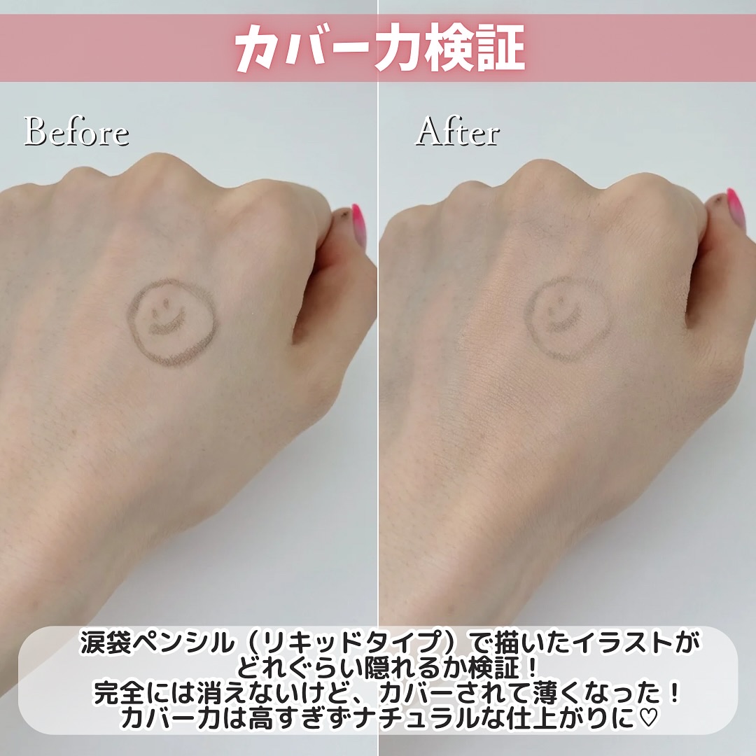 自然なうる艶感で透明感のあるお肌を演出してくれます。 スキンケア並みのエッセンス62%配合、さらにグルタチオン成分も配合されています。 着け心地が軽く、時間が経っても乾燥で崩れにくいような気がします。