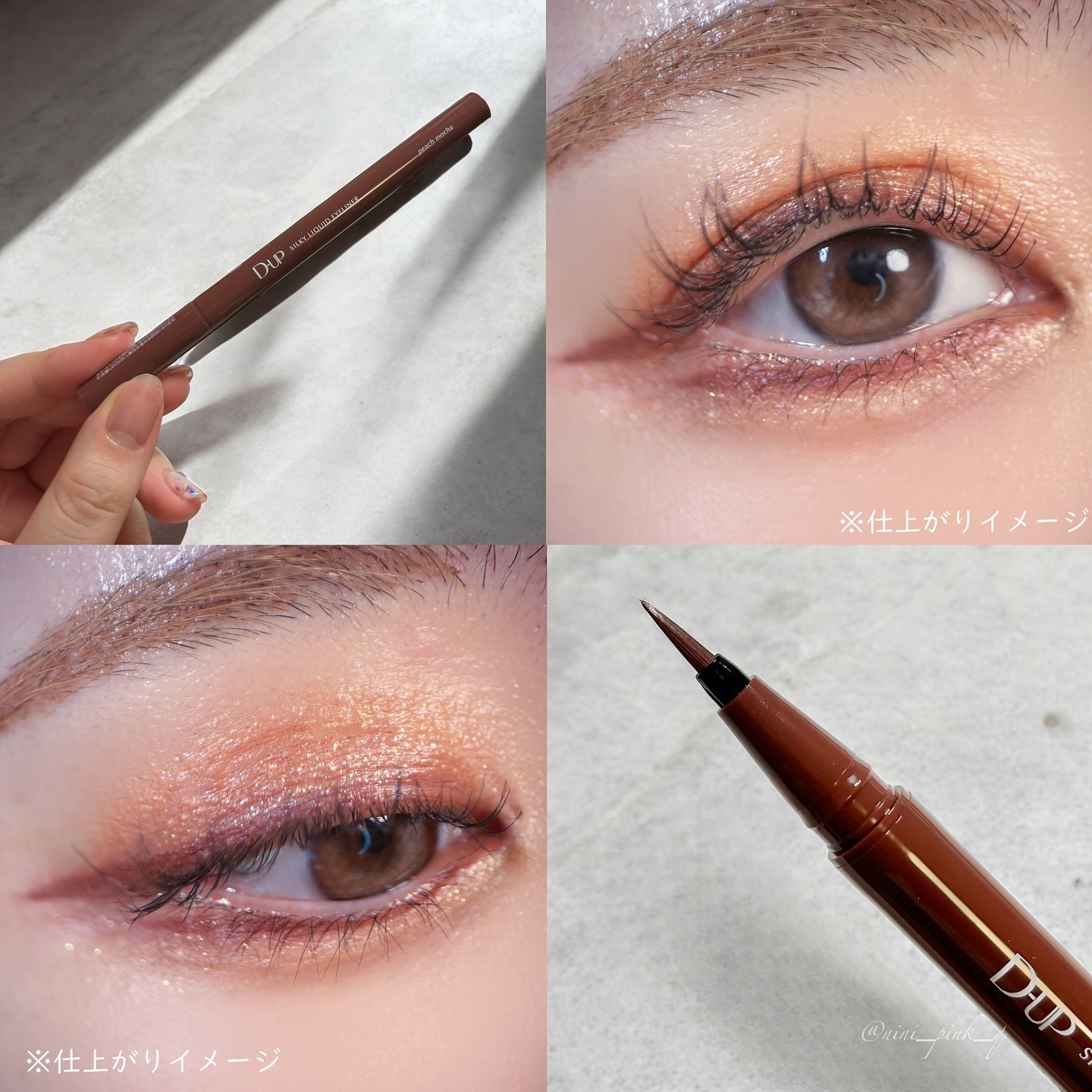 深みのあるグレージュ!ブラウンよりも少し黒っぽくて焦茶とも少し違う絶妙なカラー👏 他の似てるカラーと比較のスウォッチもしたのでぜひ参考にしてもらえると嬉しいです🥰 D-UP シルキーリキッドアイライナーWP チャコールモカ ¥1,430