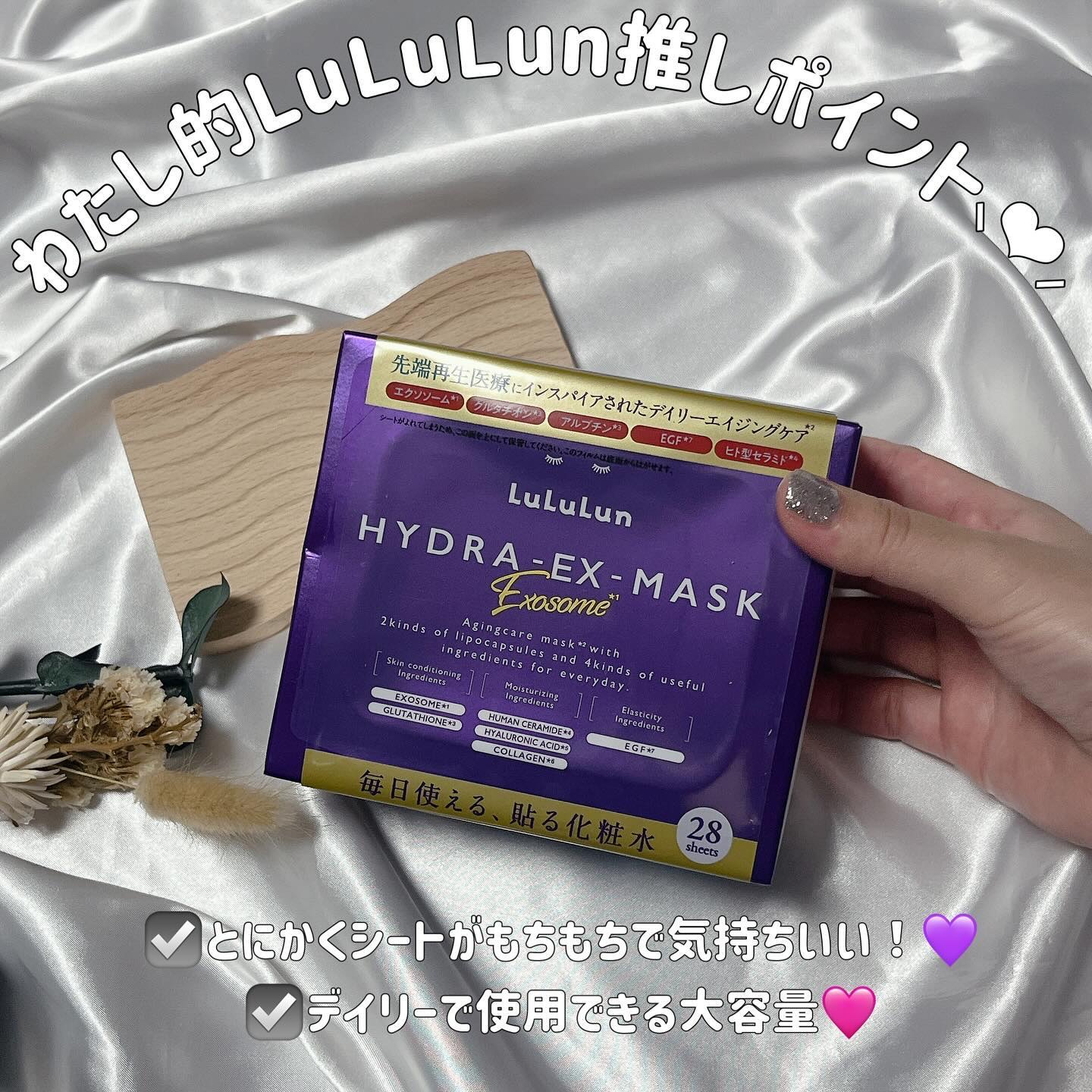 ・LuLuLunハイドラEXマスク7枚入前に頂いてリピ買いしたフェイスマスク☺️ルルルンのマスクは何種類か使ったことあるんだけどこれが1番好き!!成分的にもエクソソームや白玉グルタチオンなど話題の成分配合美容液マスクとは違って毎日朝晩のスキン...