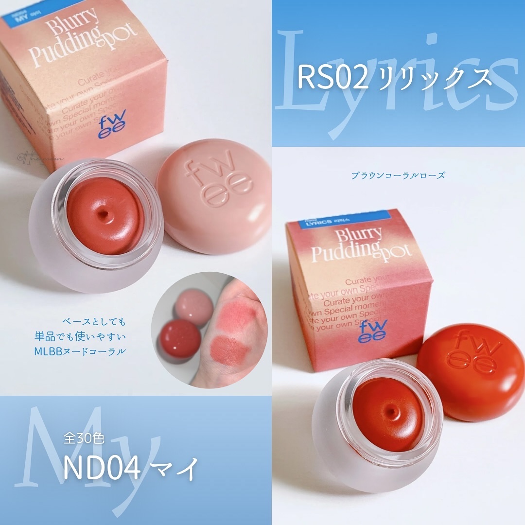 ふわふわスフレのチークカラー☁️⸝⸝⸝fweeリップアンドチークブラーリープリンポットを購入しましたー!!カラバリ豊富すぎてほんとに迷った😑🤍内容量5g🤍色味ND04マイ赤寄りのローズピンク?コーラルピンク?色味伝えるのめっちゃムズい、、、(...