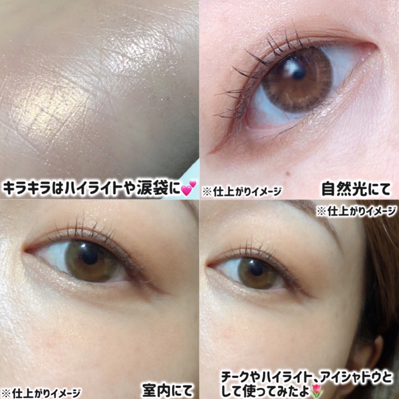 120色の多彩なカラーと5つの質感が目元の魅力を最大限に引き出すアイシャドウ💕 涙袋、ハイライトカラーとして使うと良かったです! 5枚目の写真や6枚目の動画も涙袋とアイホールの黒目の上にハイライトとして塗っています。 ツヤんとした発色でどんなアイメイクにも合わせやすいと思います✨ 粉質はサラサラしています。 ちなみに店舗では人気ナンバー2のカラーだと言っていました❤︎" 目元がキラキラするのが好みなのでギリギリ上半期マイベストコスメにランクインしました!💕