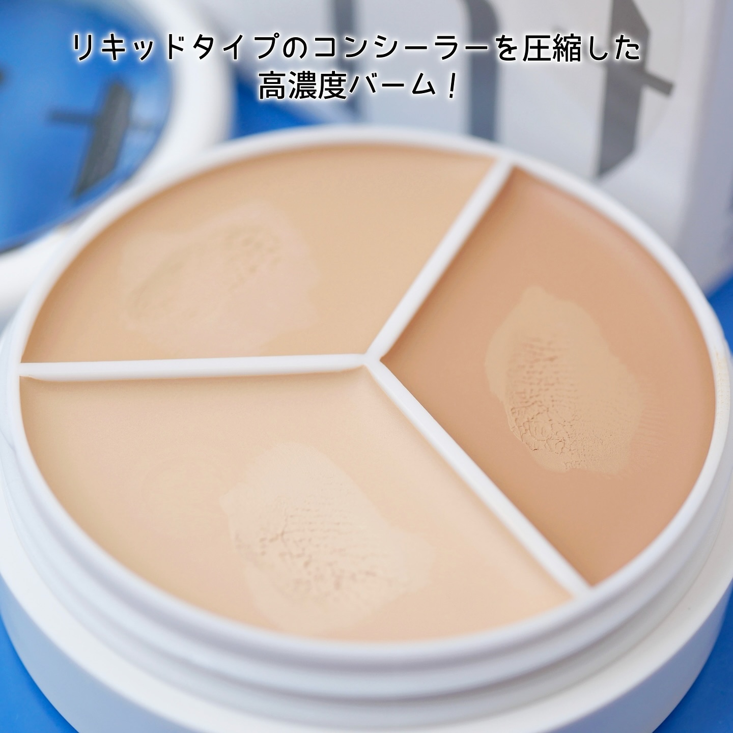 - クマからニキビ跡、シミまでこれ1つでカバー。 3色タイプだからこそ、気になるところや肌色を選ばずにご使用いただけます。 リキッドタイプを圧縮した高濃度バームのため高カバー高密着*¹を実現。 コンシーラーだけでなくコントアとしても使用可能です。 *1メーカー比