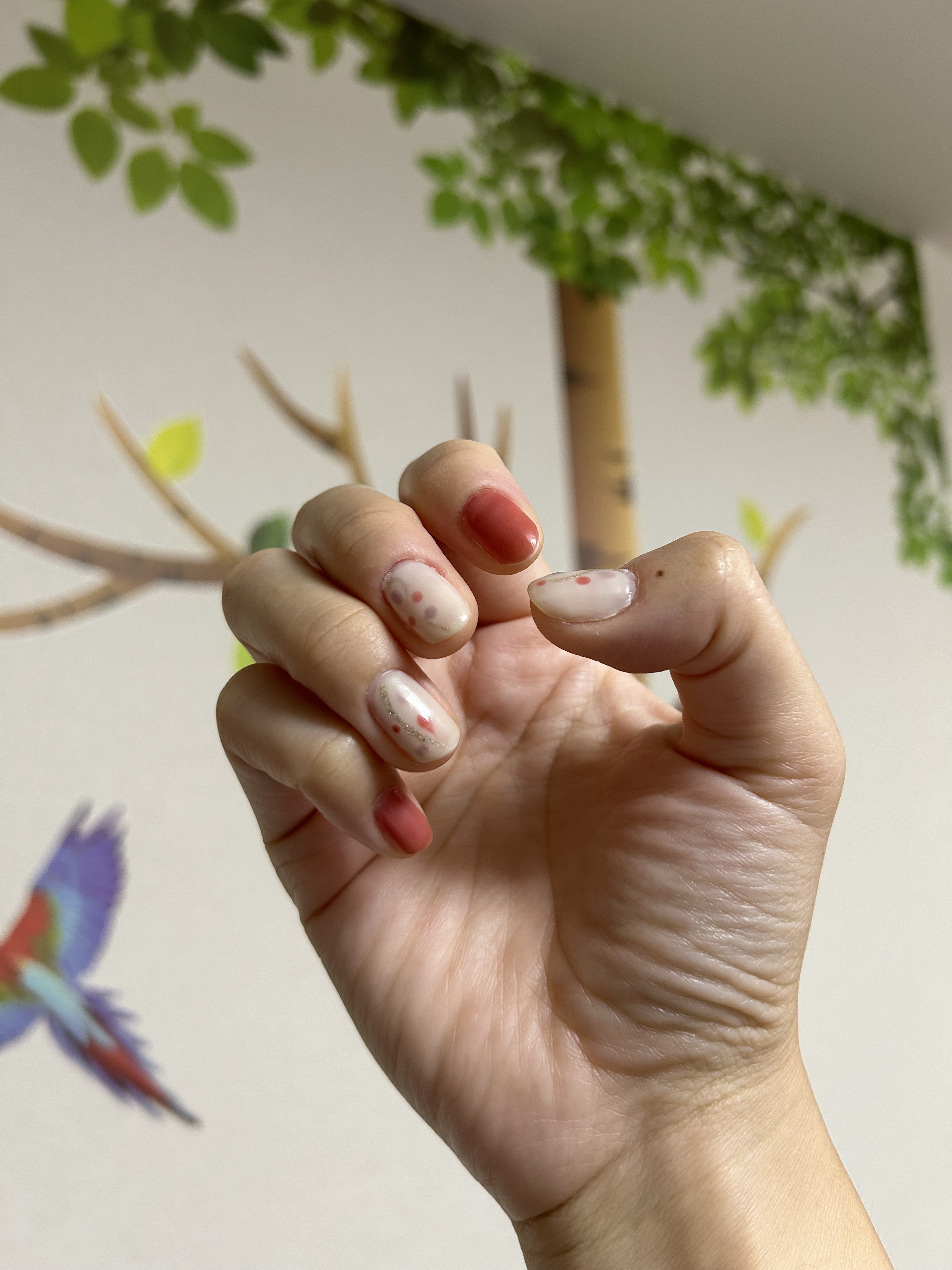 爪の半分辺りまで剥げて不細工だったのですが、少しでも見栄えが良くなりました。 出席停止期間は木曜日までなので、それ以降にガッツリ印象変わるようなネイルを楽しみたいなぁと思っています🙌🏻 …にしても、先月下旬にインフルエンザA型にかかったのに、先週B型判定って運悪すぎ😢