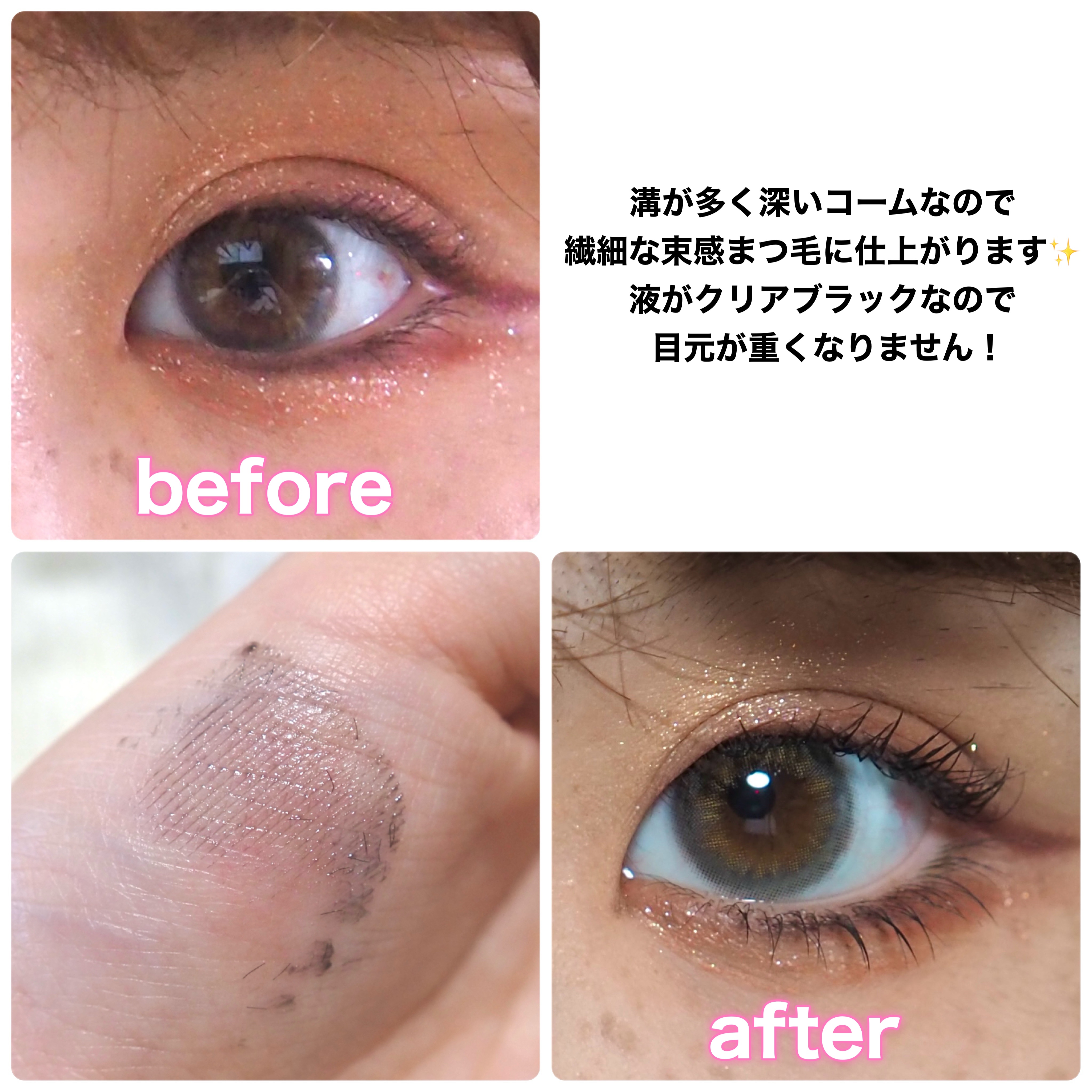 プールでびしょ濡れになってもしっかりカールキープ!滲まない!! 艶のある繊細束感まつ毛に仕上がります!まさに日本のアイドルのようなまつ毛💕 このマスカラをつけてプールに行ったのですが全く崩れませんでした!しっかり潜ったりウォータースライダーに乗ったりしたのに!!すごい!!