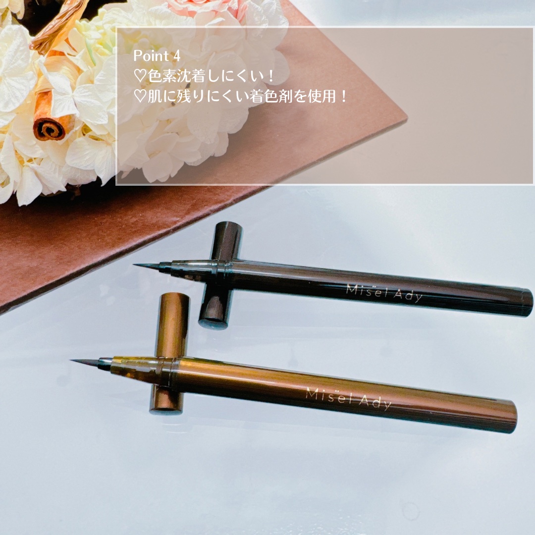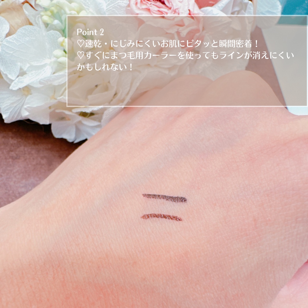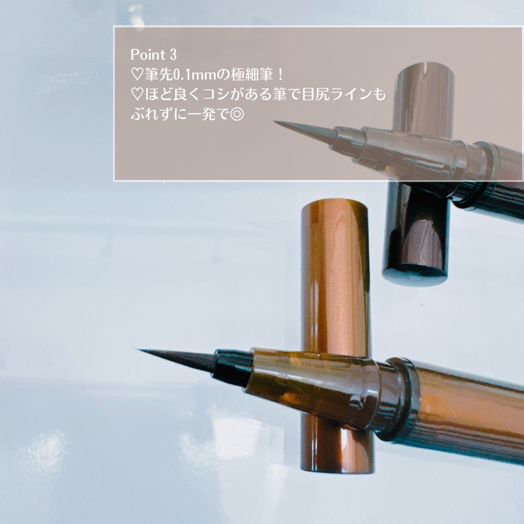 ちょい透け発色のおかげでくっきりし過ぎず ほどよい抜け感が出るからナチュラルメイク派さんも使いやすい◎ 先端0.1mmの極細筆で目尻ラインも描きやすいよ🖌️ 速乾処方だから朝急いでメイクする時にも非常に助かる😭🙏