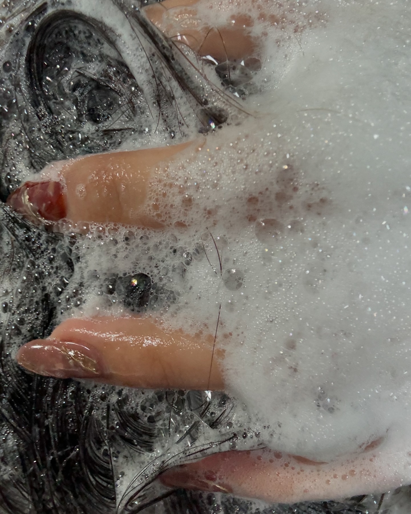 | ジェルのようなみずみずしいテクスチャーのシャンプーで、髪に「塗り広げて」から泡立てて使います。 | 詳細を見る | ||