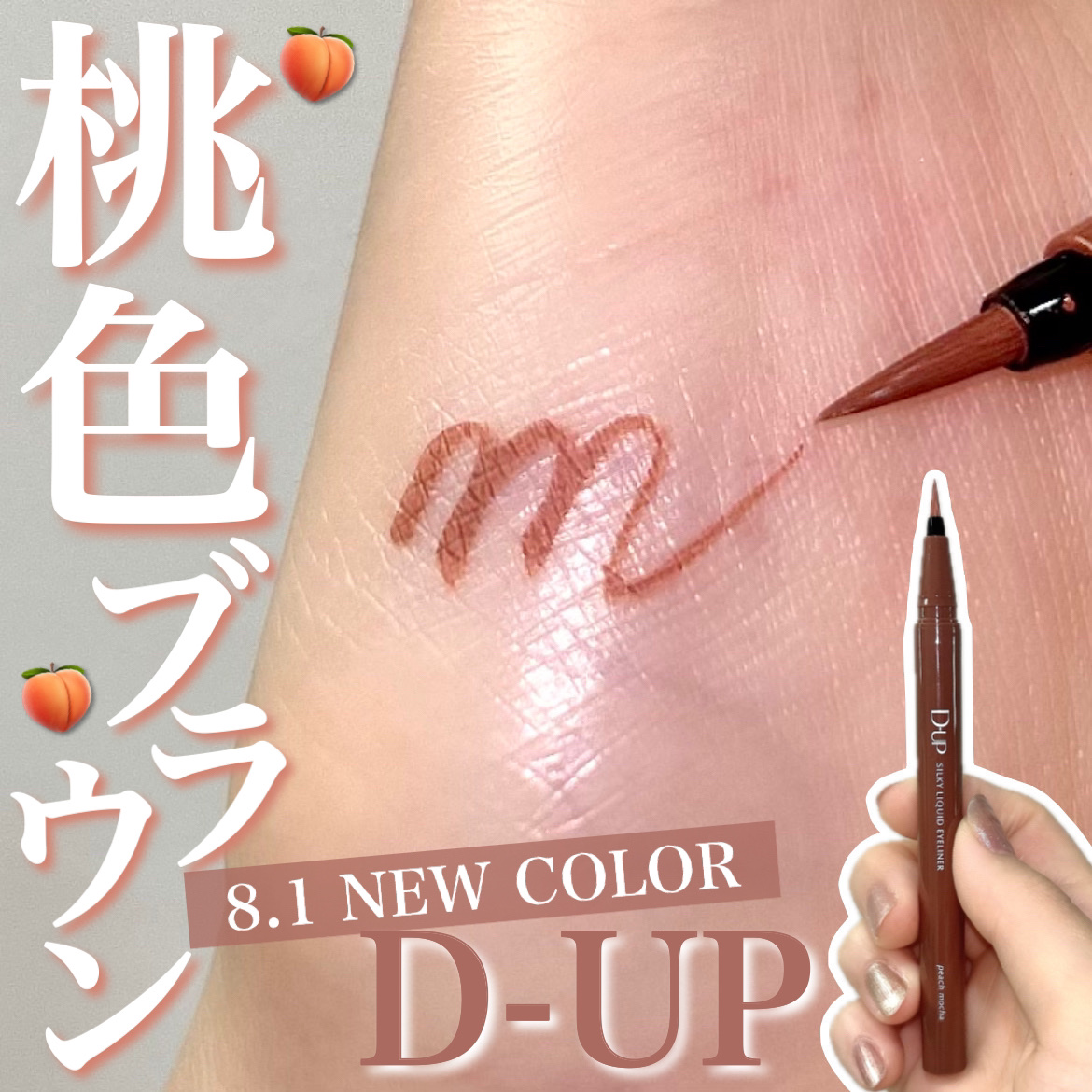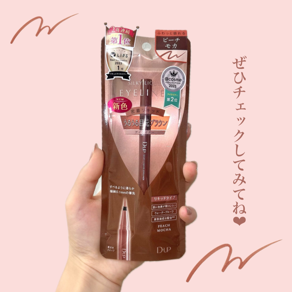 アイメイクの洒落度が増した気がする😍 普通にアイラインとして使うのも可愛いんだけど、粘膜にひくと目力増して写真写りも良くなる✌️♥️ D-UP シルキーリキッドアイライナーWP ピーチモカ ↑↑↑ほんと可愛いからチェックしてみて🫶