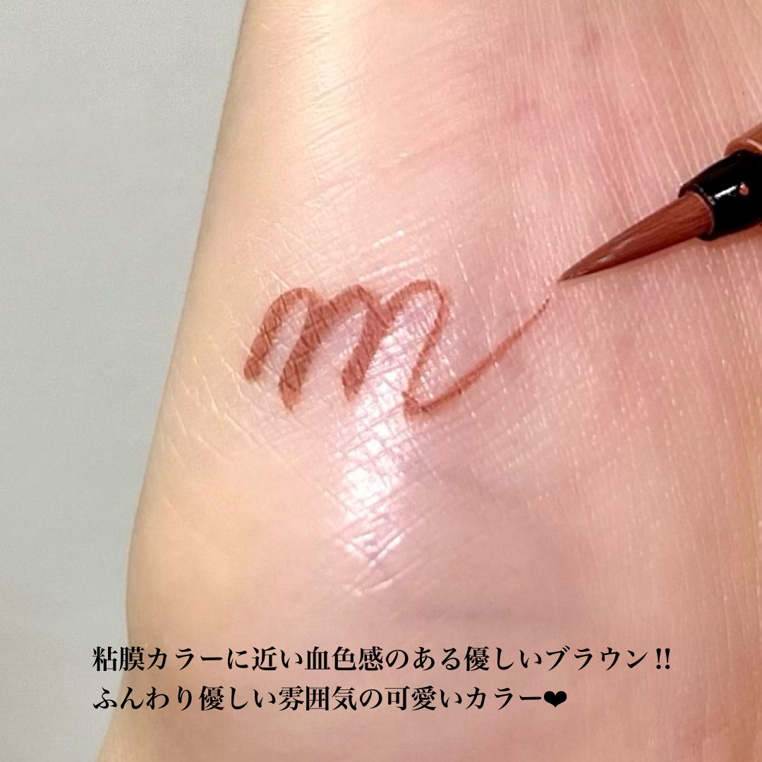 一度使うとクセになる描きごこちです🥺 アイライナー苦手な方やメイク初心者さんにぜひ使って欲しい!! 瞬間密着して耐久性もしっかりあるのでメイク崩れの心配もなし◎ 新色のコーラルブラウンは抜け感を出しつつ大人っぽさと遊び心プラスしてくれるカラーでとても気に入りました🤍🤍