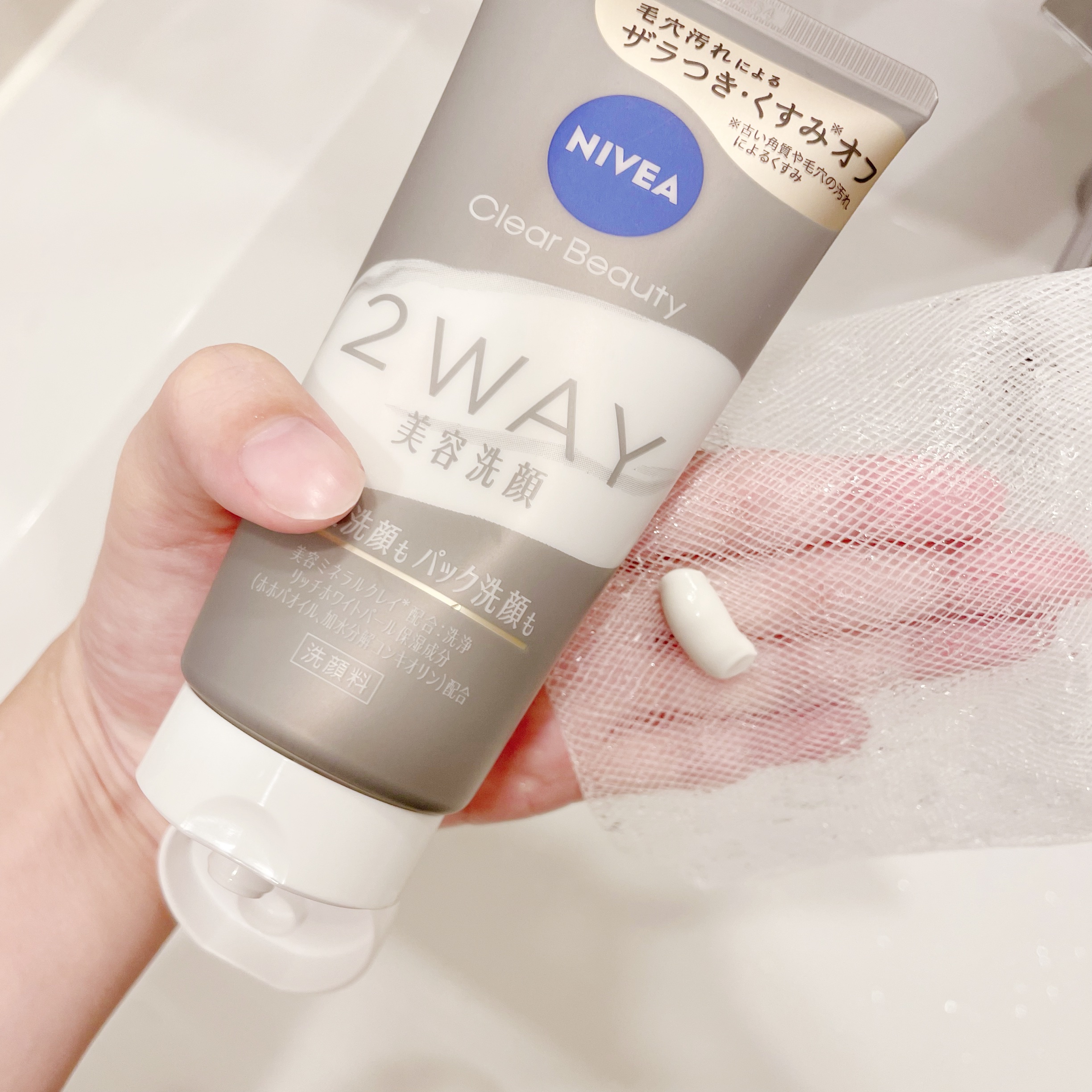 .ニベア2WAY美容洗顔..古い角質を柔らかくほぐし、汚れを吸着する洗顔料。美容ミネラルクレイ(タナクラクレイ、カオリン)、リッチホワイトパール保湿成分(ホホバオイル、加水分解コンキオリン)配合。泡とパックの2WAYで使える便利なアイテムで、...