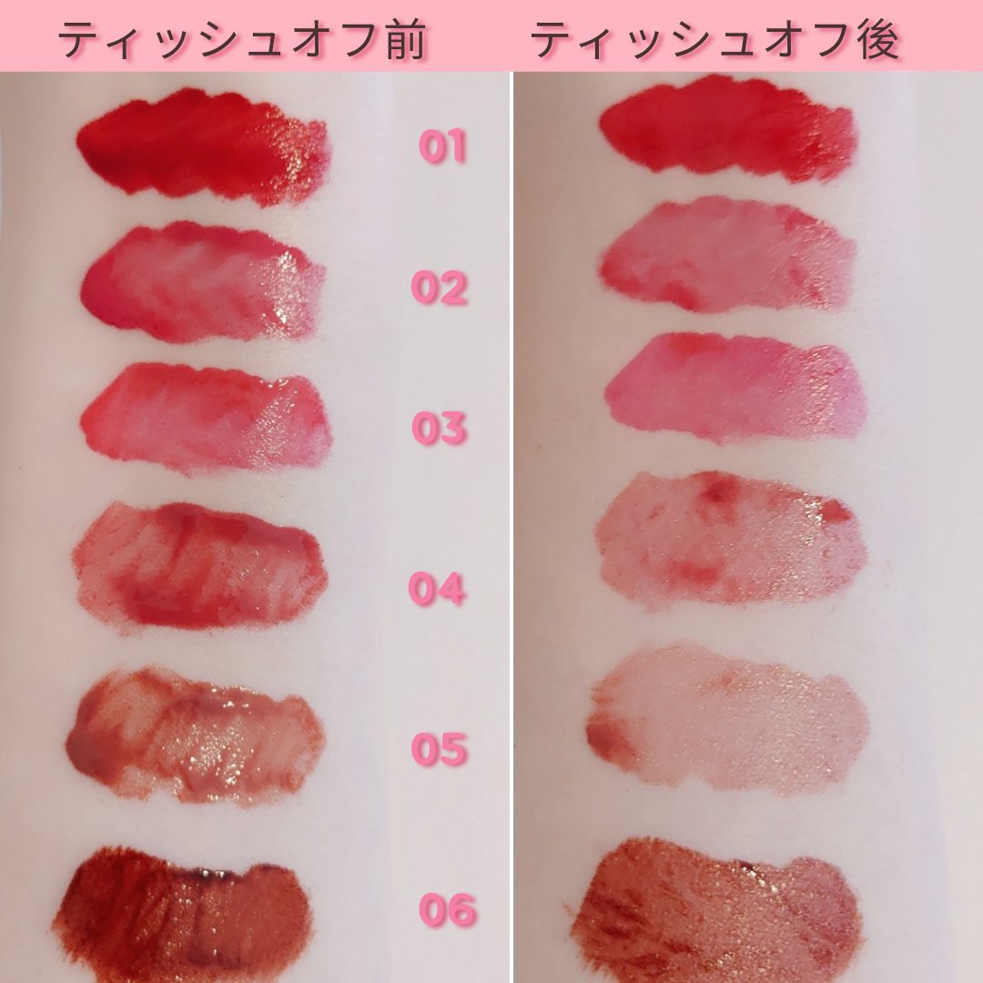 - <【旧】01 スカーレット(SCARLET)> 水、オクチルドデカノール、BG、ダイマージリノール酸水添ヒマシ油、DPG、ジグリセリン、ペンチレングリコール、(アクリル酸Na/アクリロイルジメチルタウリンNa)コポリマー、イソヘキサデカン、トリ(カプリル酸/カプリン酸)グリセリル、グリセリン、ステアリン酸ソルビタン、エチルセルロース、PEG-60水添ヒマシ油、ポリソルベート80、オレイン酸ソルビタン、エチルヘキシルグリセリン、エチレンジアミンジコハク酸3Na、没食子酸プロピル、セテアリルアルコール、フェノキシエタノール、赤227、黄5、赤104(1)、黄4 <【旧】02 ベリーモア(BERRY MORE)> 水、オクチルドデカノール、ダイマージリノール酸水添ヒマシ油、DPG、BG、ジグリセリン、グリセリン、ペンチレングリコール、(アクリル酸Na/アクリロイルジメチルタウリンNa)コポリマー、トリ(カプリル酸/カプリン酸)グリセリル、ステアリン酸ソルビタン、エチルセルロース、イソヘキサデカン、PEG-60水添ヒマシ油、ポリソルベート80、エチルヘキシルグリセリン、オレイン酸ソルビタン、エチレンジアミンジコハク酸3Na、オキシ水酸化Al、ポリアクリル酸アンモニウム、没食子酸プロピル、セテアリルアルコール、フェノキシエタノール、酸化チタン、赤227、黄4、赤104(1)、青1 <【旧】03 ゴシップ(GOSSIP)> 水、オクチルドデカノール、ダイマージリノール酸水添ヒマシ油、DPG、BG、ジグリセリン、グリセリン、ペンチレングリコール、(アクリル酸Na/アクリロイルジメチルタウリンNa)コポリマー、トリ(カプリル酸/カプリン酸)グリセリル、ステアリン酸ソルビタン、イソヘキサデカン、エチルセルロース、PEG-60水添ヒマシ油、ポリソルベート80、オレイン酸ソルビタン、エチルヘキシルグリセリン、エチレンジアミンジコハク酸3Na、オキシ水酸化Al、ポリアクリル酸アンモニウム、没食子酸プロピル、セテアリルアルコール、フェノキシエタノール、酸化チタン、赤104(1)、赤227、黄4、黄5、青1 <【旧】04 サングリア(SANGRIA)> 水、オクチルドデカノール、ダイマージリノール酸水添ヒマシ油、DPG、BG、ジグリセリン、グリセリン、ペンチレングリコール、(アクリル酸Na/アクリロイルジメチルタウリンNa)コポリマー、トリ(カプリル酸/カプリン酸)グリセリル、ステアリン酸ソルビタン、エチルセルロース、イソヘキサデカン、PEG-60水添ヒマシ油、ポリソルベート80、エチルヘキシルグリセリン、オレイン酸ソルビタン、エチレンジアミンジコハク酸3Na、オキシ水酸化Al、ポリアクリル酸アンモニウム、没食子酸プロピル、セテアリルアルコール、フェノキシエタノール、酸化チタン、赤227、黄4、黄5、赤104(1)、青1 <【旧】05 マーマレード(MARMALADE)> 水、オクチルドデカノール、ダイマージリノール酸水添ヒマシ油、DPG、BG、ジグリセリン、グリセリン、ペンチレングリコール、(アクリル酸Na/アクリロイルジメチルタウリンNa)コポリマー、トリ(カプリル酸/カプリン酸)グリセリル、ステアリン酸ソルビタン、エチルセルロース、イソヘキサデカン、PEG-60水添ヒマシ油、ポリソルベート80、エチルヘキシルグリセリン、オレイン酸ソルビタン、エチレンジアミンジコハク酸3Na、オキシ水酸化Al、ポリアクリル酸アンモニウム、没食子酸プロピル、セテアリルアルコール、フェノキシエタノール、酸化チタン、黄4、赤227、黄5、青1 <【旧】06 ブリックオレンジ(BRICK ORANGE)> 水、オクチルドデカノール、ダイマージリノール酸水添ヒマシ油、DPG、BG、ジグリセリン、グリセリン、ペンチレングリコール、(アクリル酸Na/アクリロイルジメチルタウリンNa)コポリマー、イソヘキサデカン、トリ(カプリル酸/カプリン酸)グリセリル、ステアリン酸ソルビタン、エチルセルロース、PEG-60水添ヒマシ油、ポリソルベート80、オレイン酸ソルビタン、エチルヘキシルグリセリン、エチレンジアミンジコハク酸3Na、オキシ水酸化Al、ポリアクリル酸アンモニウム、没食子酸プロピル、セテアリルアルコール、フェノキシエタノール、黄4、赤227、黄5、酸化チタン、青1