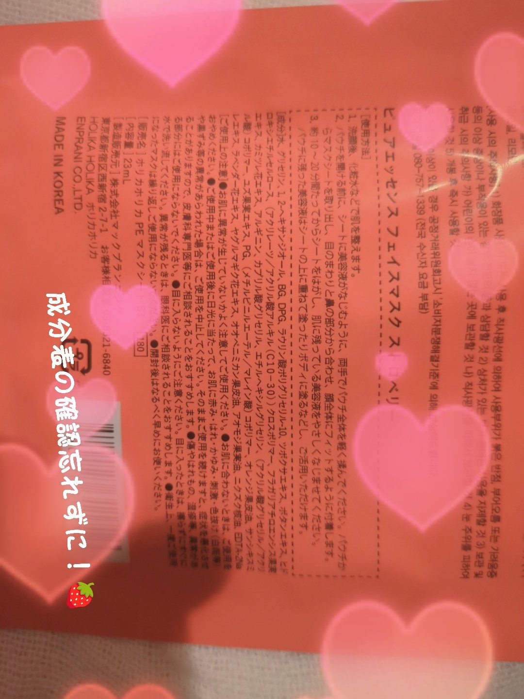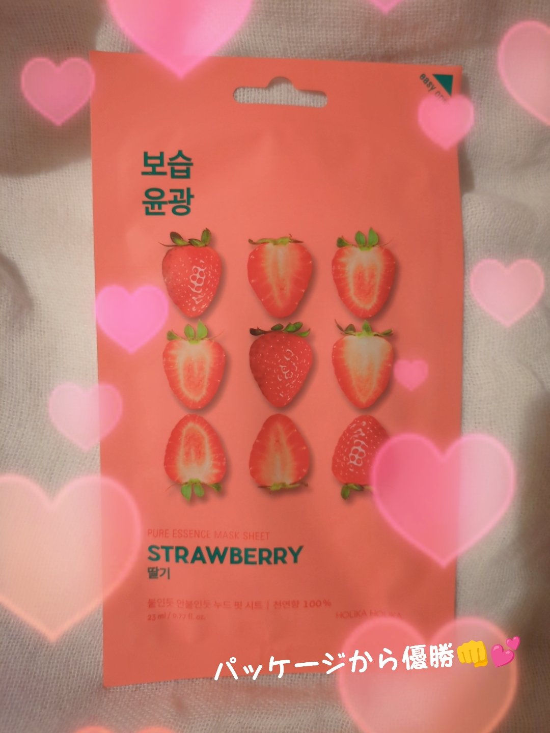 開封の仕方が面白い✨️ ポテトチップスの袋を開けるみたいに開けました🦉 薄いシートだけどもしっかり美容液たっぷり配合✨️ 10分~20分つけました😊 いちごの美味しい季節になりました♥️ 私は2回いちご狩り行く予定です🤣