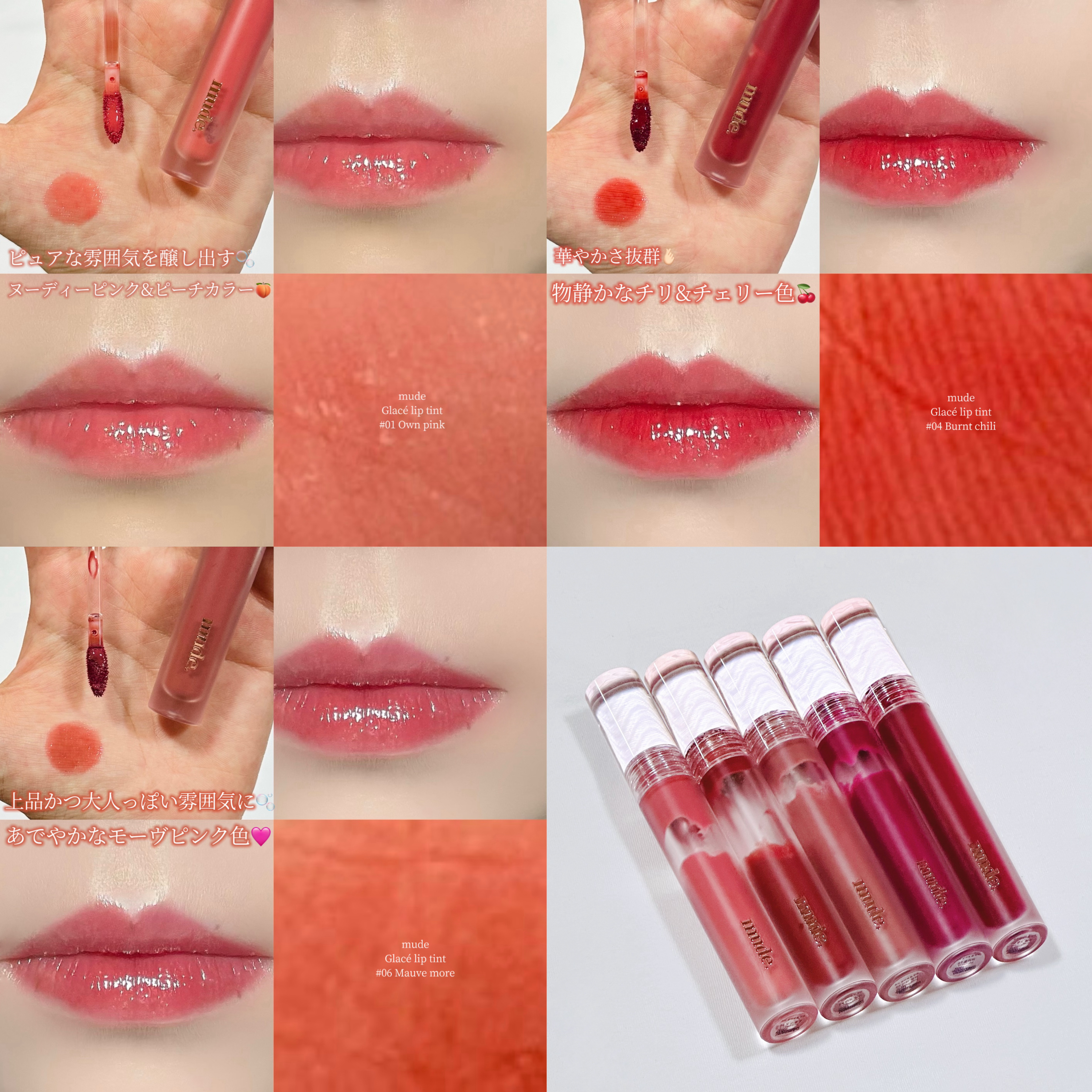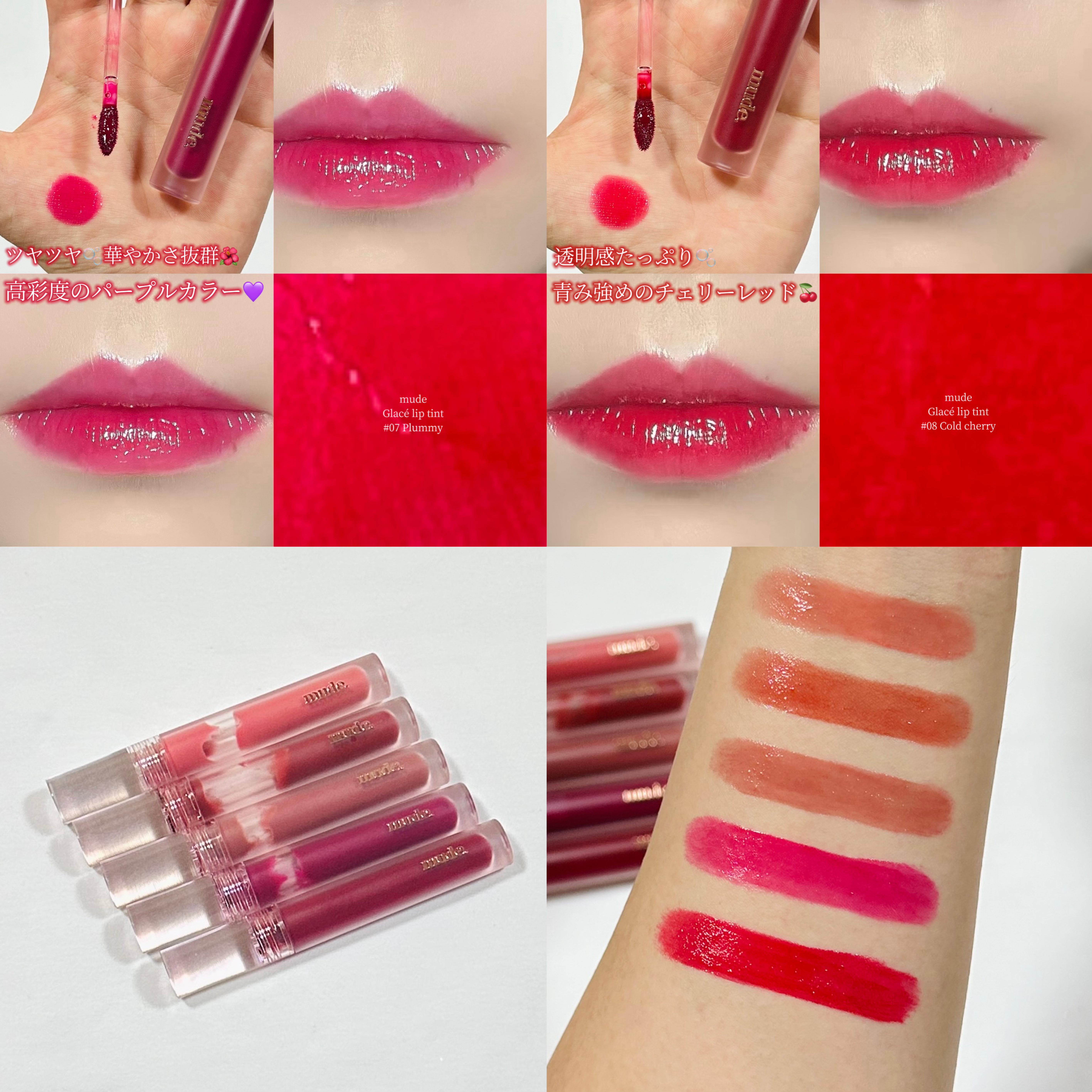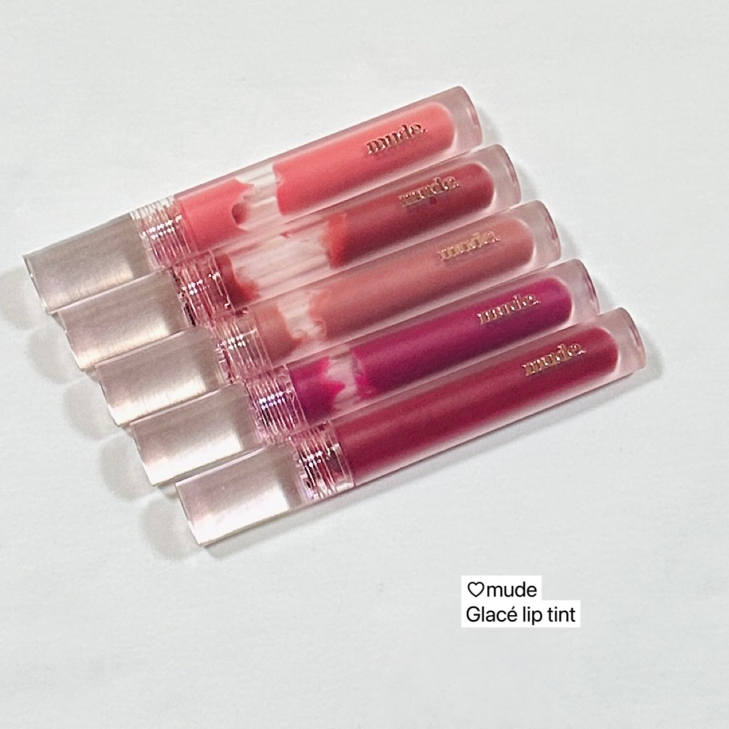 \桃のシロップをひとさじたらした🍑/mudeグラッセリップティント¥2,167・・🍑テクスチャーシロップのようなとろっとしたみずみずしいテクスチャー唇に溶け込むようにサラッと密着してくれるつけた時からぴたっと密着してくれるのでつけ心地が良い🍑...