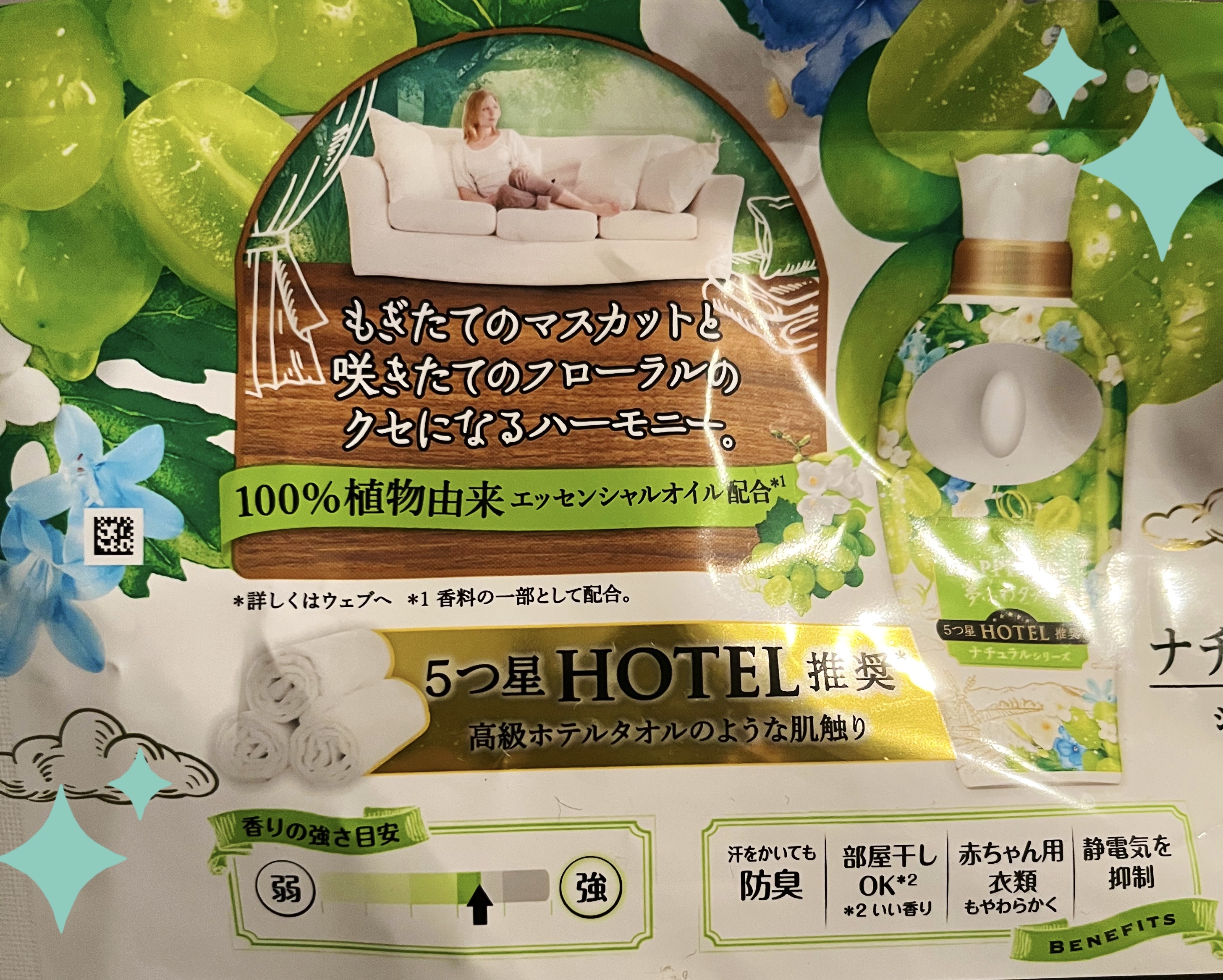 シャインマスカット美味しくて大好きなのですが、こちらはどうかな🤔?✍レノア HAPPINESS夢ふわタッチシャインマスカット残り湯洗濯、部屋干しタイプの私ですがこちらはマスカット?がふんわり香る程度です臭くはならないので🙆かな〜リピは微妙です...