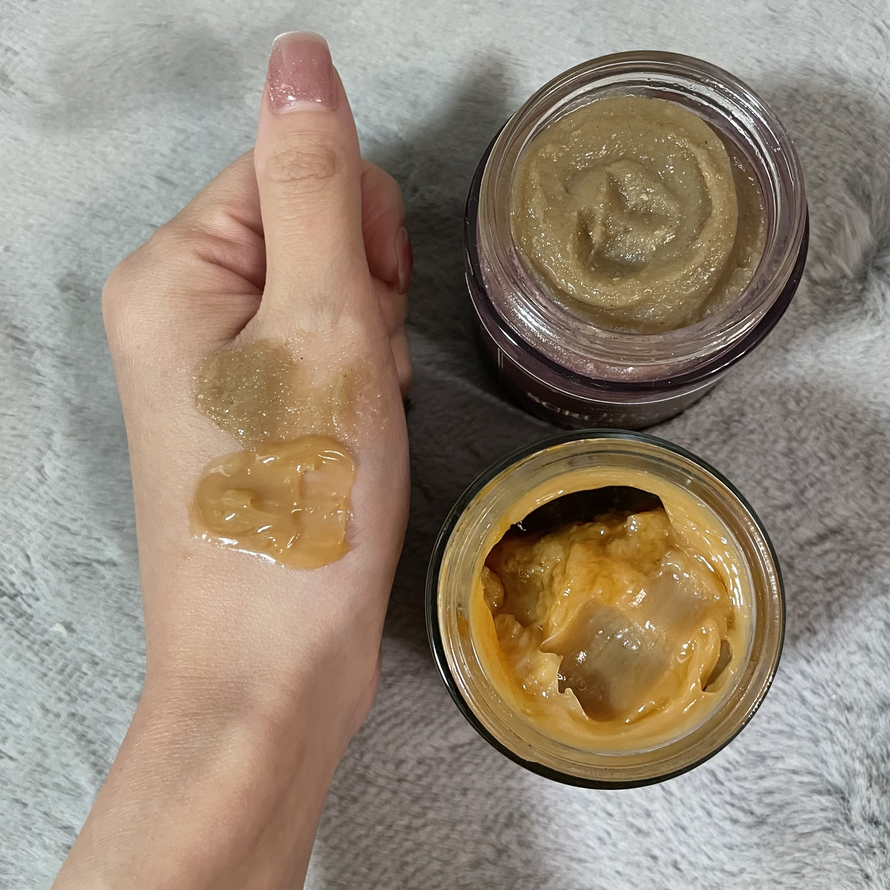 つるすべ肌でやみつきの手触りに🍯🫧 保湿には天然はちみつが持つ深い栄養でハリのあるお肌へと導いてくれるハニーマスク🍯 とろりとしていて本物のはちみつみたい! 角質ケアにはイチジク酵素と黒砂糖スクラブのフィグスクラブマスク❤️ スクラブが細かくてお顔に使いやすい!つるすべな使用感でメイクノリが良かった🥰 ハニーマスクとフィグスクラブマスクを1:1で混ぜて使用すれば 保湿ケアと角質ケアができるからW使いがオススメだよ✨