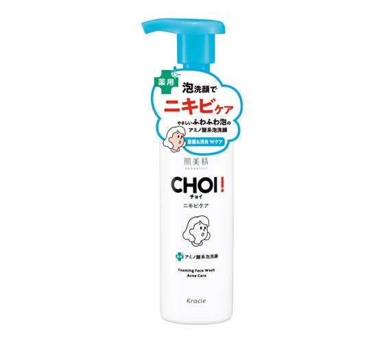- ●チョイッと手軽にニキビ悩みを集中ケア! 肌美精CHOIシリーズ ニキビケアライン ●くり返しがちなニキビ・肌荒れに。Wの有効成分(殺菌&消炎)配合の薬用処方で、ニキビを予防してニキビの出来にくいなめらか肌へ。 ●アミノ酸系洗浄成分*1配合のふわふわ泡洗顔 ●殺菌成分「イソプロピルメチルフェノール」&消炎成分「グリチルリチン酸2K」配合 ●ひきしめ保湿成分「ビタミンハーブCP*2」配合。毛穴が気になる肌をキュッとひきしめながらうるおいを補給します。 ●角栓クリア成分「酒石酸」配合。毛穴の角栓をやわらげて落とします。 ●天然精油のグリーンハーバルの香り ●合成香料無添加、無着色 ●アレルギーテスト済み*3、ノンコメドジェニックテスト済み*3 *1:ヤシ油脂肪酸メチルタウリンナトリウム *2:ビタミンC誘導体(硫酸アスコルビル2Na)、カモミール、セージ、アロエ CP:Complex *3:全ての方にアレルギーが起こらない、コメド(ニキビのもと)ができないということではありません。