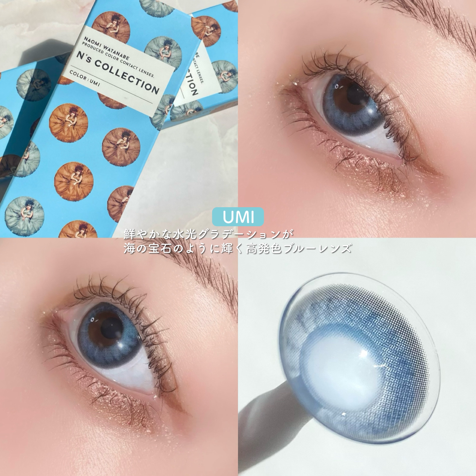 - ※2025年6月以降、商品パッケージ裏面・側面の一部表記を順次変更いたします。尚、これにかかる商品の交換・返品は承っておりません。 「大きく見せる」「盛る」といった従来の視点だけではなく、メイクと合わせることでより魅力的な印象をつくる“メイクを引き立たせるカラコン”をコンセプトにレンズを開発。 プロデューサーである渡辺直美さんが発信するトレンドのしっかりメイクに合うレンズデザインから、日常的なナチュラルメイクに合うデザインまで、さまざまなメイクを引き立てる11種類のレンズを展開します。 カラーコンタクトレンズの不適正使用による眼障害の危険性等などがあります。 ●コンタクトレンズは高度管理医療機器です。不十分な洗浄・消毒など不適切なケアや、長時間・交換期間を超えた装用により、アレルギー性結膜炎、角膜感染症、角膜潰瘍等の重篤な眼障害が発生する危険性があります ●ご使用前に取扱説明書を確認してください 使用上の留意事項 ●眼科医院等を受診してからお求めください ●眼に異常を感じたら直ちにレンズ使用を中止し、お近くの眼科等で診察を受けてください ●医師の指示にしたがってご使用ください ●コンタクトレンズを装用する場合、自覚症状がなくても、眼科医院等での定期検査を受けてください ●レンズに不具合がある場合は使用しないでください