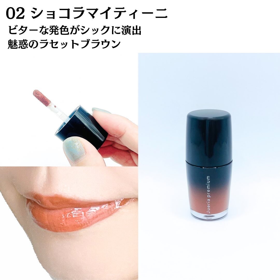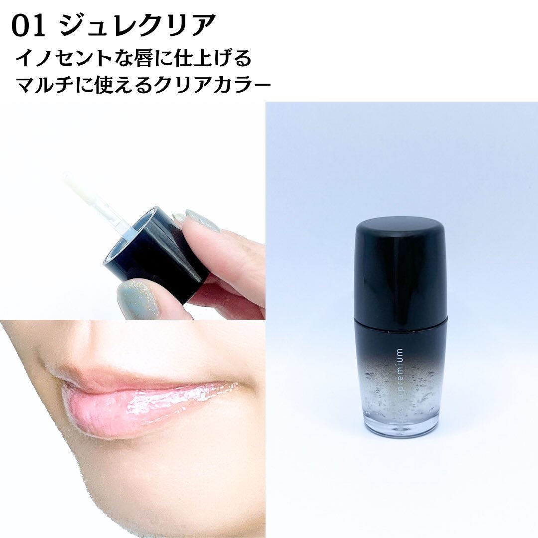 - <01 ジュレクリア> リンゴ酸ジイソステアリル、水添ポリイソブテン、ポリイソブテン、オクチルドデカノール、乳酸メンチル、パルミチン酸デキストリン、バニリルブチル、1,2-ヘキサンジオール、ハナスゲ根エキス、ヒト幹細胞順化培養液、ツバキ花エキス、コラーゲンエキス、ヒアルロン酸Na、合成ヒト遺伝子組換ポリペプチド-1、合成ヒト遺伝子組換オリゴペプチド-1、合成ヒト遺伝子組換オリゴペプチド-2、合成ヒト遺伝子組換ポリペプチド-62、合成ヒト遺伝子組換ポリペプチド-3、加水分解カイメン、ジブチルエチルヘキサノイルグルタミド、ジブチルラウロイルグルタミド、トコフェロール、オリーブ油脂肪酸ソルビタン、BG、プロパンジオール、水 <02 ショコラマティーニ> リンゴ酸ジイソステアリル、水添ポリイソブテン、ポリイソブテン、オクチルドデカノール、乳酸メンチル、酸化鉄、パルミチン酸デキストリン、バニリルブチル、1,2-ヘキサンジオール、ハナスゲ根エキス、ヒト幹細胞順化培養液、ツバキ花エキス、コラーゲンエキス、ヒアルロン酸Na、合成ヒト遺伝子組換ポリペプチド-1、合成ヒト遺伝子組換オリゴペプチド-1、合成ヒト遺伝子組換オリゴペプチド-2、合成ヒト遺伝子組換ポリペプチド-62、合成ヒト遺伝子組換ポリペプチド-3、加水分解カイメン、ジブチルエチルヘキサノイルグルタミド、ジブチルラウロイルグルタミド、トコフェロール、イソステアリン酸ソルビタン、オリーブ油脂肪酸ソルビタン、BG、プロパンジオール、水、酸化チタン、赤202 <03 杏仁ピーチ> リンゴ酸ジイソステアリル、水添ポリイソブテン、ポリイソブテン、オクチルドデカノール、乳酸メンチル、酸化チタン、パルミチン酸デキストリン、バニリルブチル、1,2-ヘキサンジオール、イソステアリン酸ソルビタン、ハナスゲ根エキス、ヒト幹細胞順化培養液、ツバキ花エキス、コラーゲンエキス、ヒアルロン酸Na、合成ヒト遺伝子組換ポリペプチド-1、合成ヒト遺伝子組換オリゴペプチド-1、合成ヒト遺伝子組換オリゴペプチド-2、合成ヒト遺伝子組換ポリペプチド-62、合成ヒト遺伝子組換ポリペプチド-3、加水分解カイメン、ジブチルエチルヘキサノイルグルタミド、ジブチルラウロイルグルタミド、トコフェロール、オリーブ油脂肪酸ソルビタン、BG、プロパンジオール、水、酸化鉄、赤202、黄5 <04 マカロンフィグ> リンゴ酸ジイソステアリル、水添ポリイソブテン、ポリイソブテン、オクチルドデカノール、乳酸メンチル、酸化チタン、パルミチン酸デキストリン、バニリルブチル、1,2-ヘキサンジオール、イソステアリン酸ソルビタン、ハナスゲ根エキス、ヒト幹細胞順化培養液、ツバキ花エキス、コラーゲンエキス、ヒアルロン酸Na、合成ヒト遺伝子組換ポリペプチド-1、合成ヒト遺伝子組換オリゴペプチド-1、合成ヒト遺伝子組換オリゴペプチド-2、合成ヒト遺伝子組換ポリペプチド-62、合成ヒト遺伝子組換ポリペプチド-3、加水分解カイメン、ジブチルエチルヘキサノイルグルタミド、ジブチルラウロイルグルタミド、トコフェロール、オリーブ油脂肪酸ソルビタン、BG、プロパンジオール、水、酸化鉄、赤202
